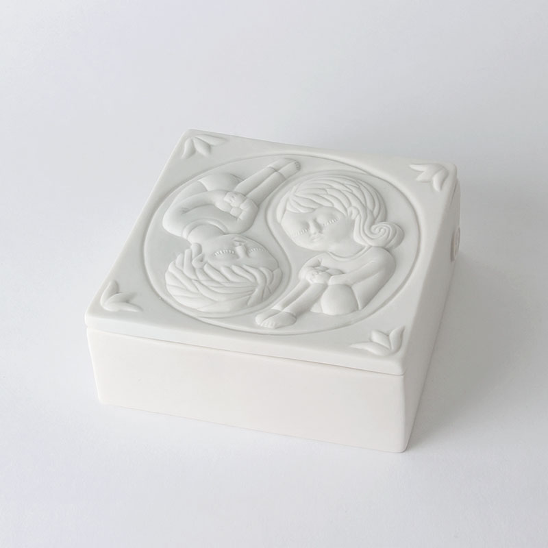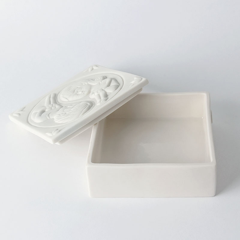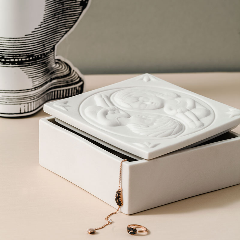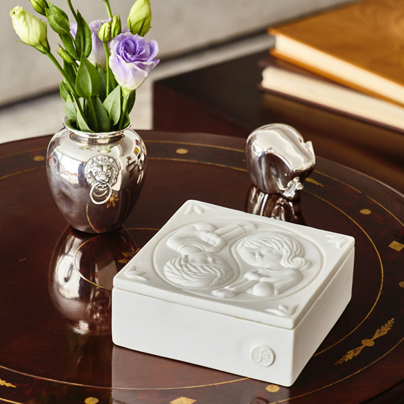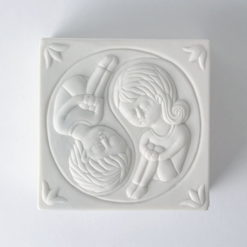Bella y delicada pieza de porcelana natural trabajada en alto relieve y bañada en delicado esmalte transparente. Representa la ilustración “Yin Yang” de Fito Espinosa, que contiene a un hombre y una mujer girando sobre su propio centro como símbolos opuestos y complementarios de las energías masculina y femenina.