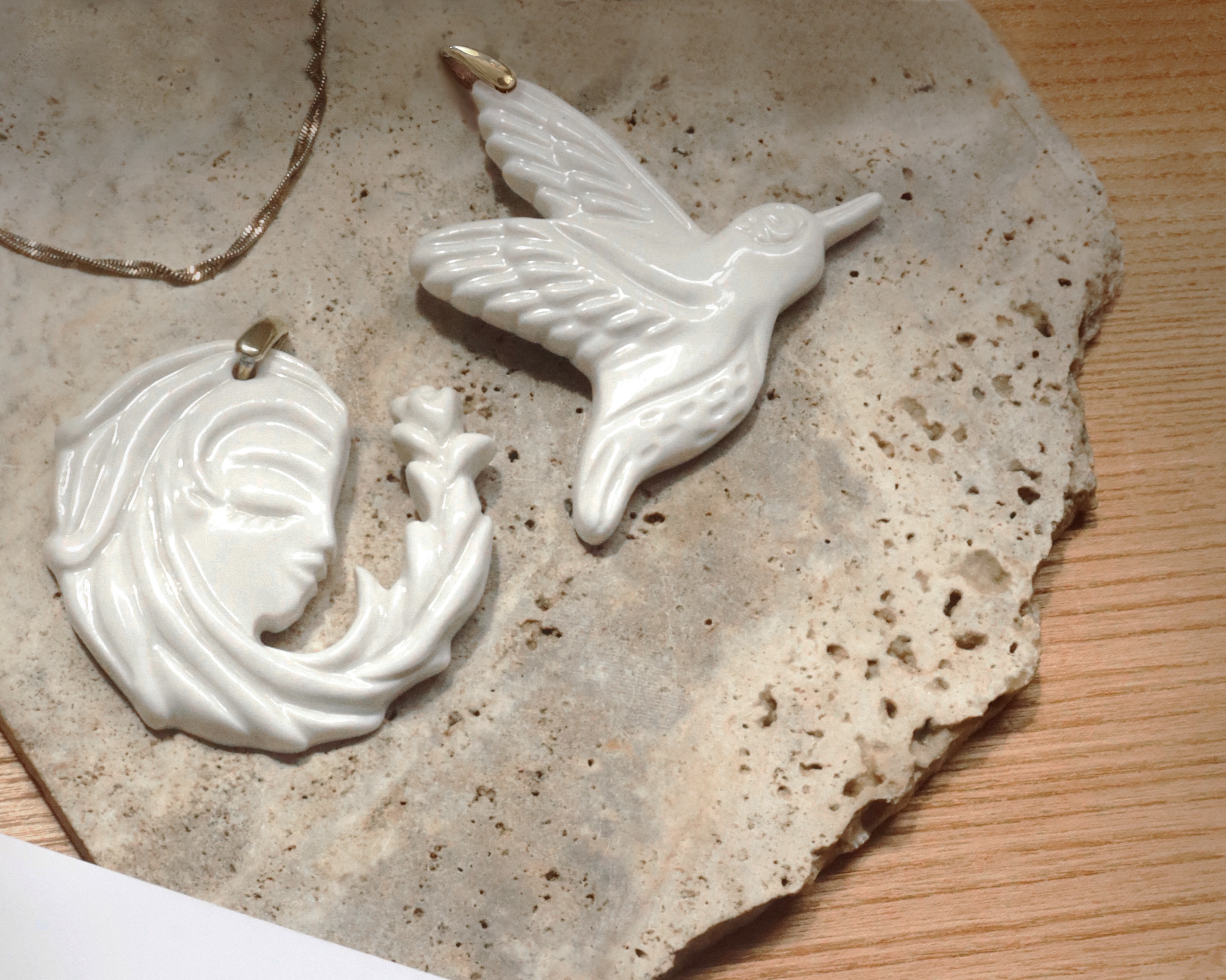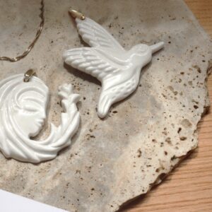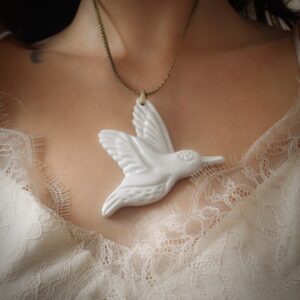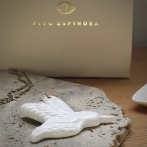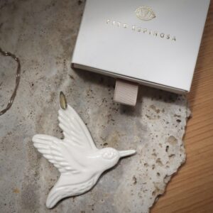 COLGANTE COLIBRÍ es una pieza de porcelana brillante con accesorio de bronce ⁎⁺˳ ✧ En su vuelo ligero habita la alegría: un gesto sutil que nos recuerda la belleza de lo efímero y la importancia de celebrar cada instante.