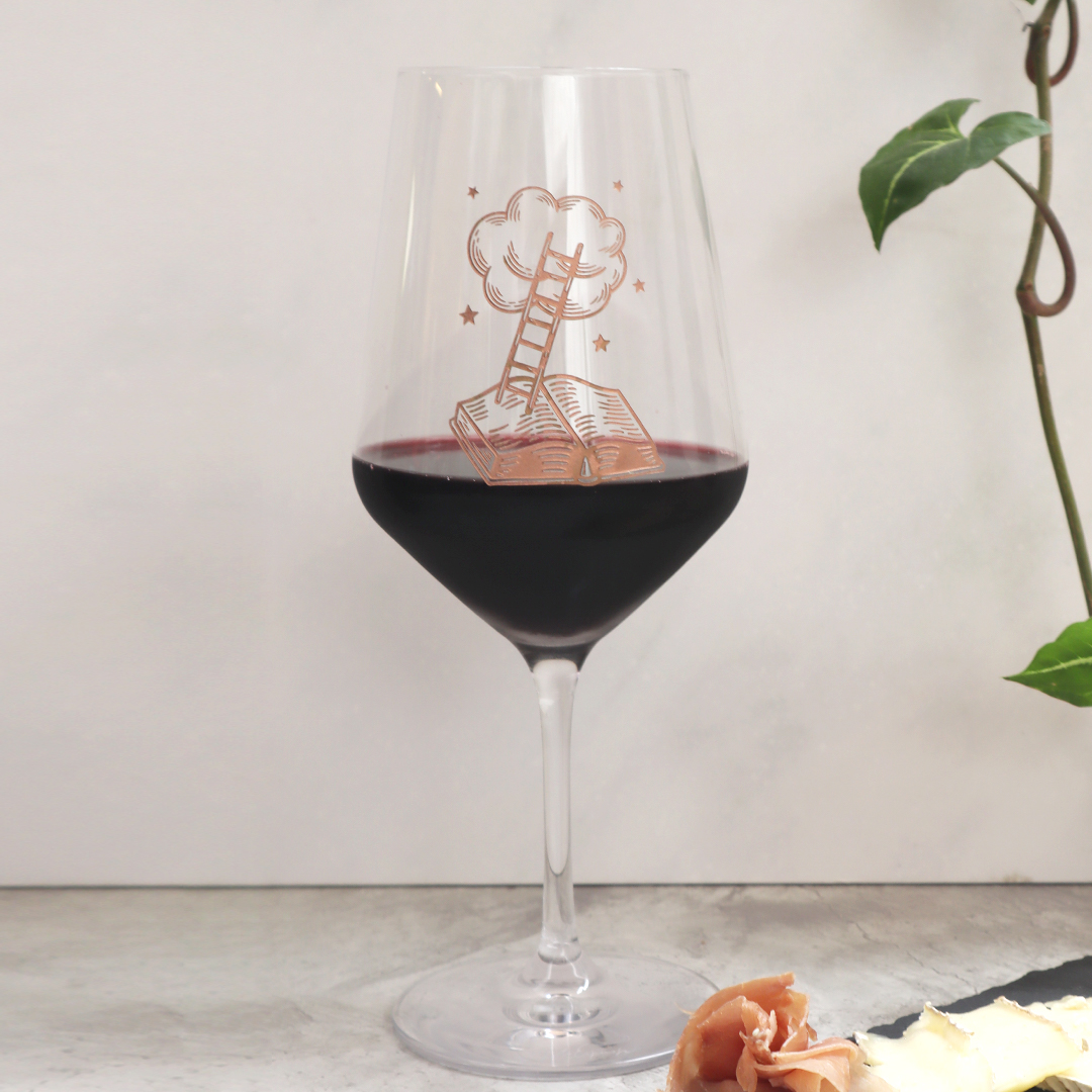 Copa de Cristal para Vino, ilustrada por Fito Espinosa en bajo relieve y fino acabado metálico. Presentación en caja empastada de colección con solapa, cintillo y cierre imantado.