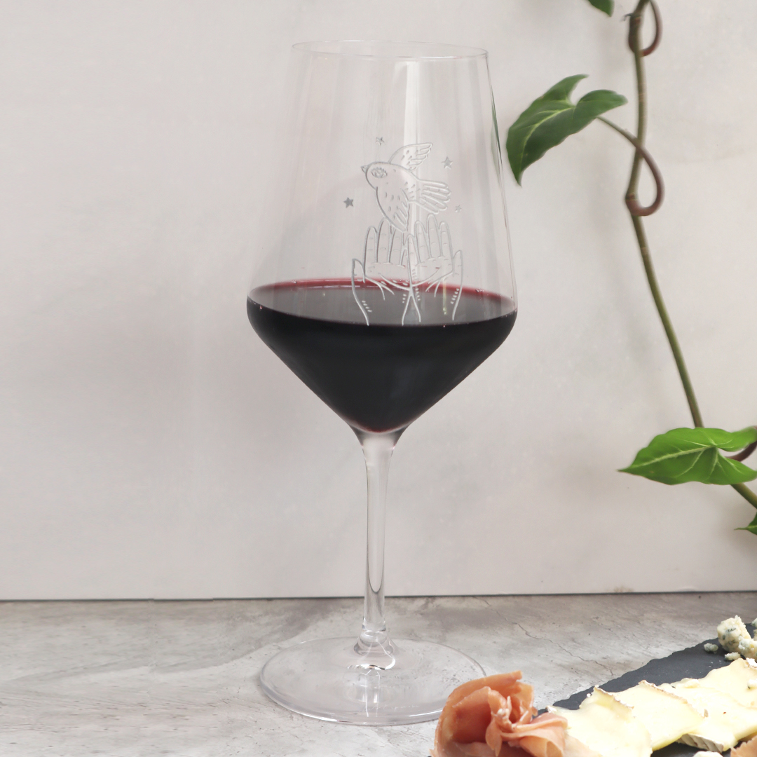Copa de Cristal para Vino, ilustrada por Fito Espinosa en bajo relieve y fino acabado metálico. Presentación en caja empastada de colección con solapa, cintillo y cierre imantado.