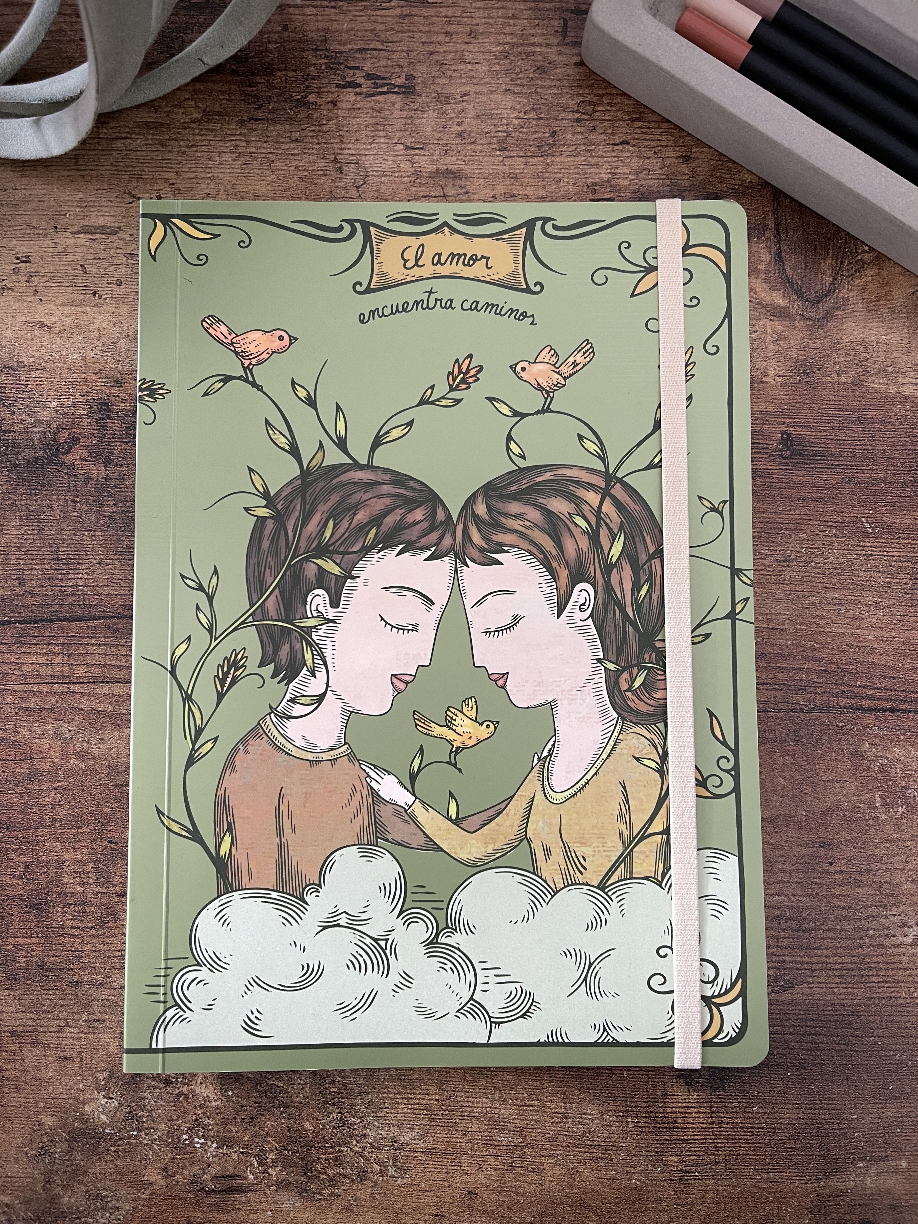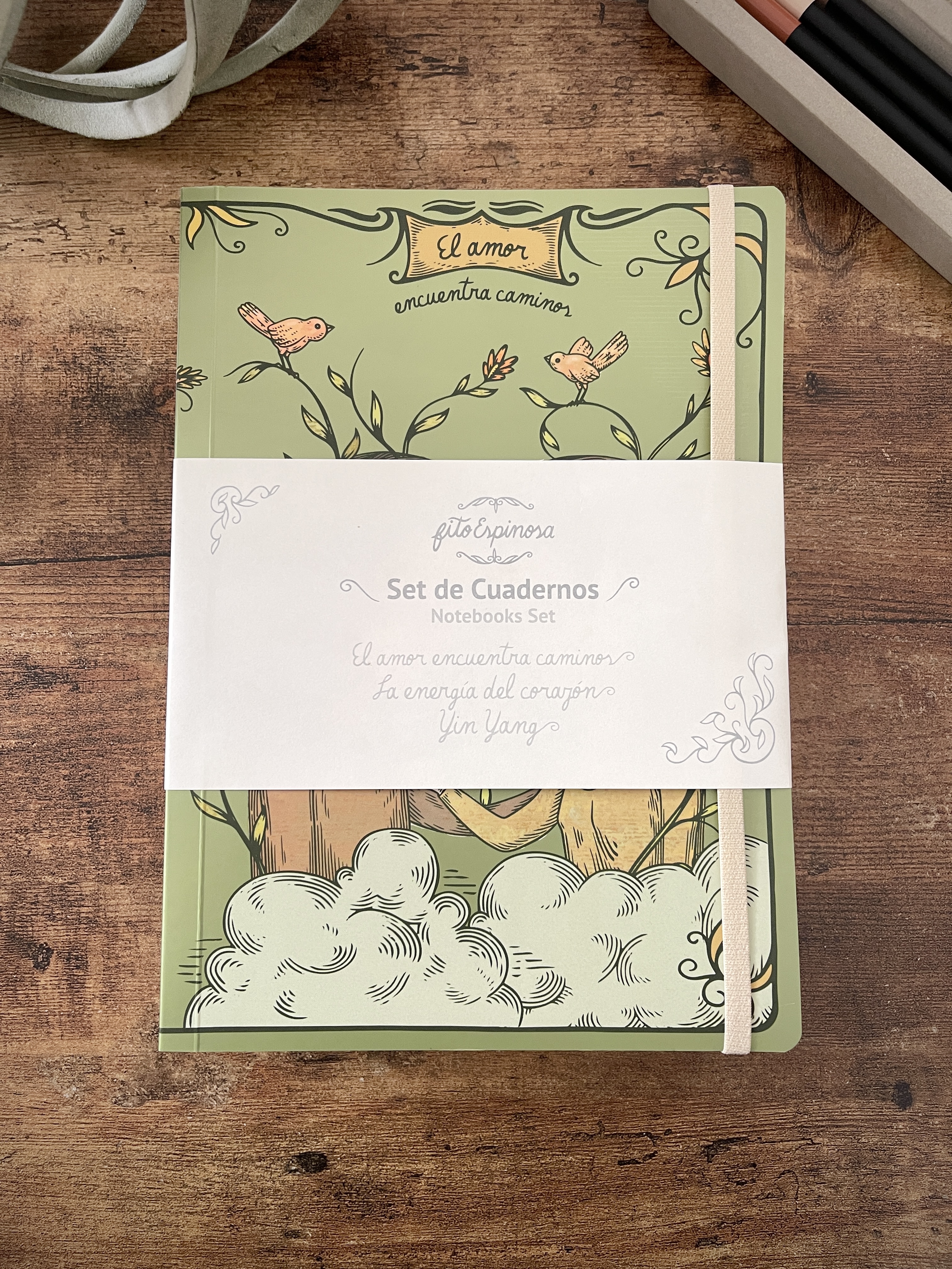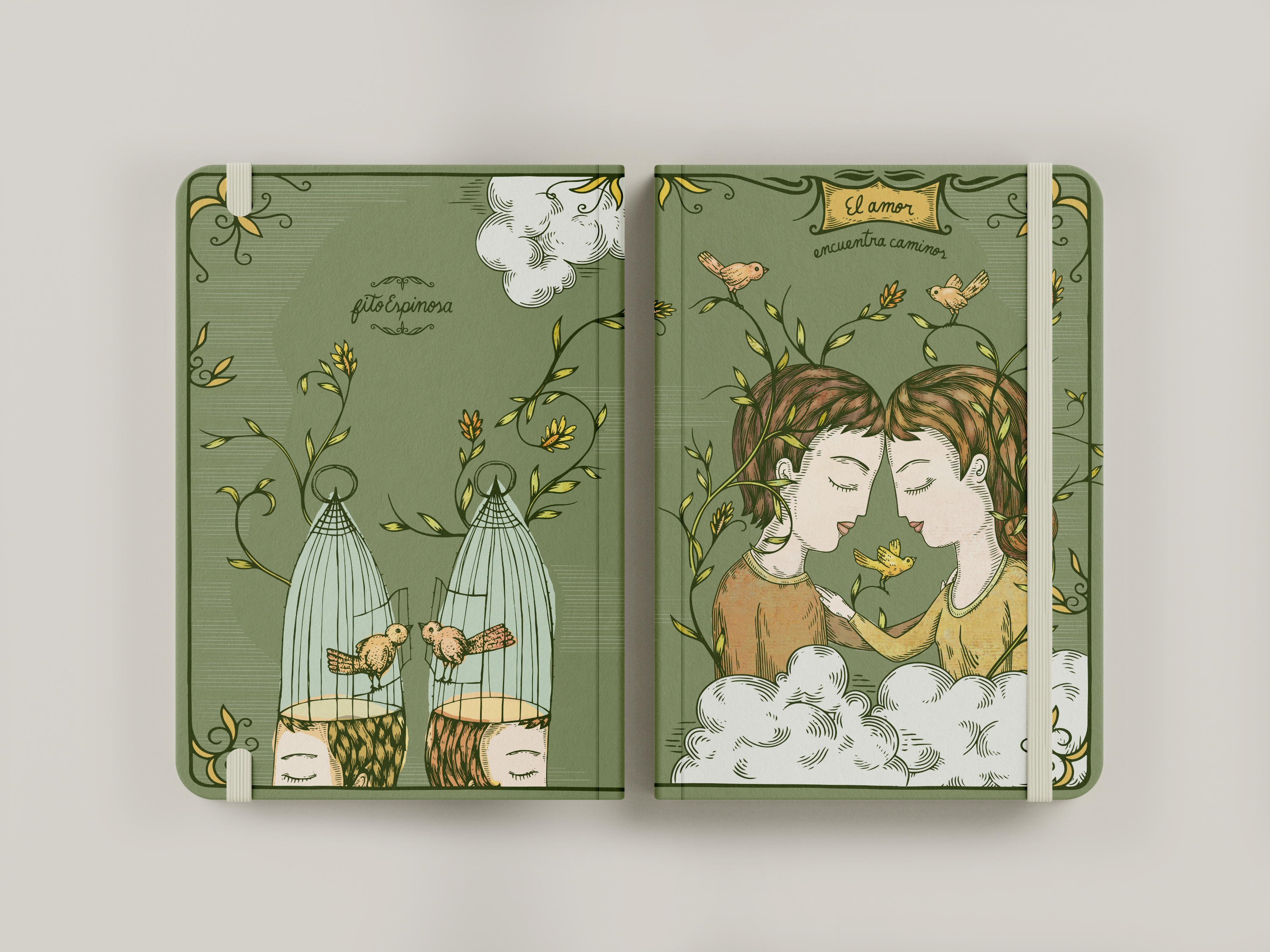 Cuaderno de tapa blanda tamaño A5, elaborado con papel avena fino de 85 grms, elástico marcador y 180 páginas interiores en blanco ideales para escribir o dibujar. Las dos primeras páginas incluyen un encabezado de Fito Espinosa, así como una ilustración a full color en exteriores. Basado en la ilustración “Algo” y “A pesar” de Fito Espinosa.