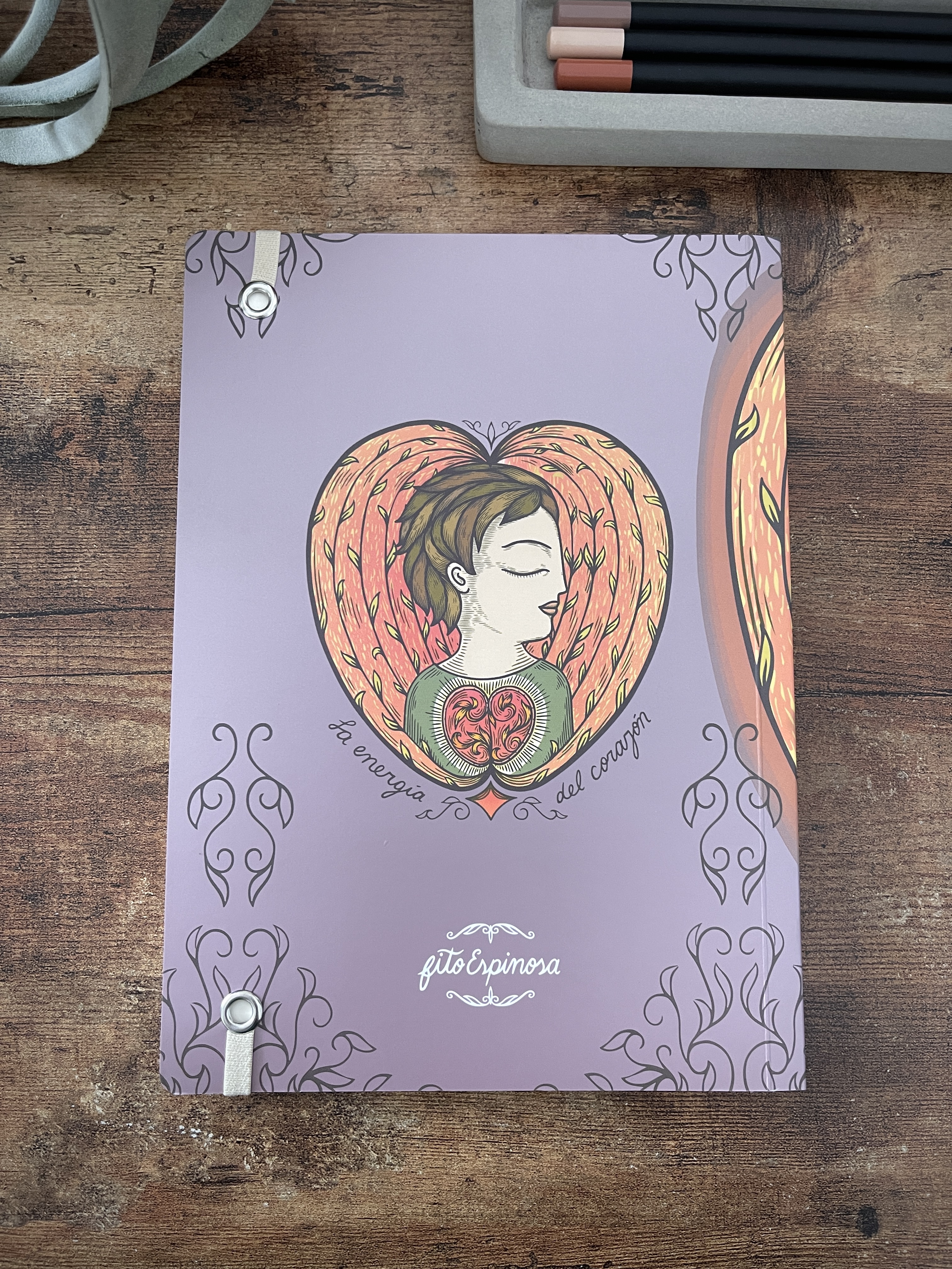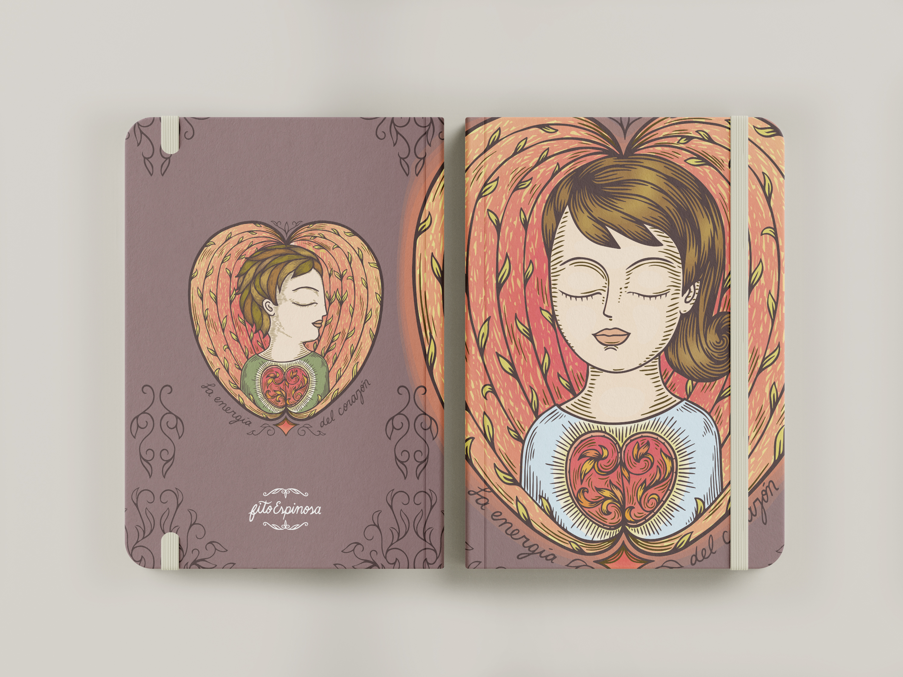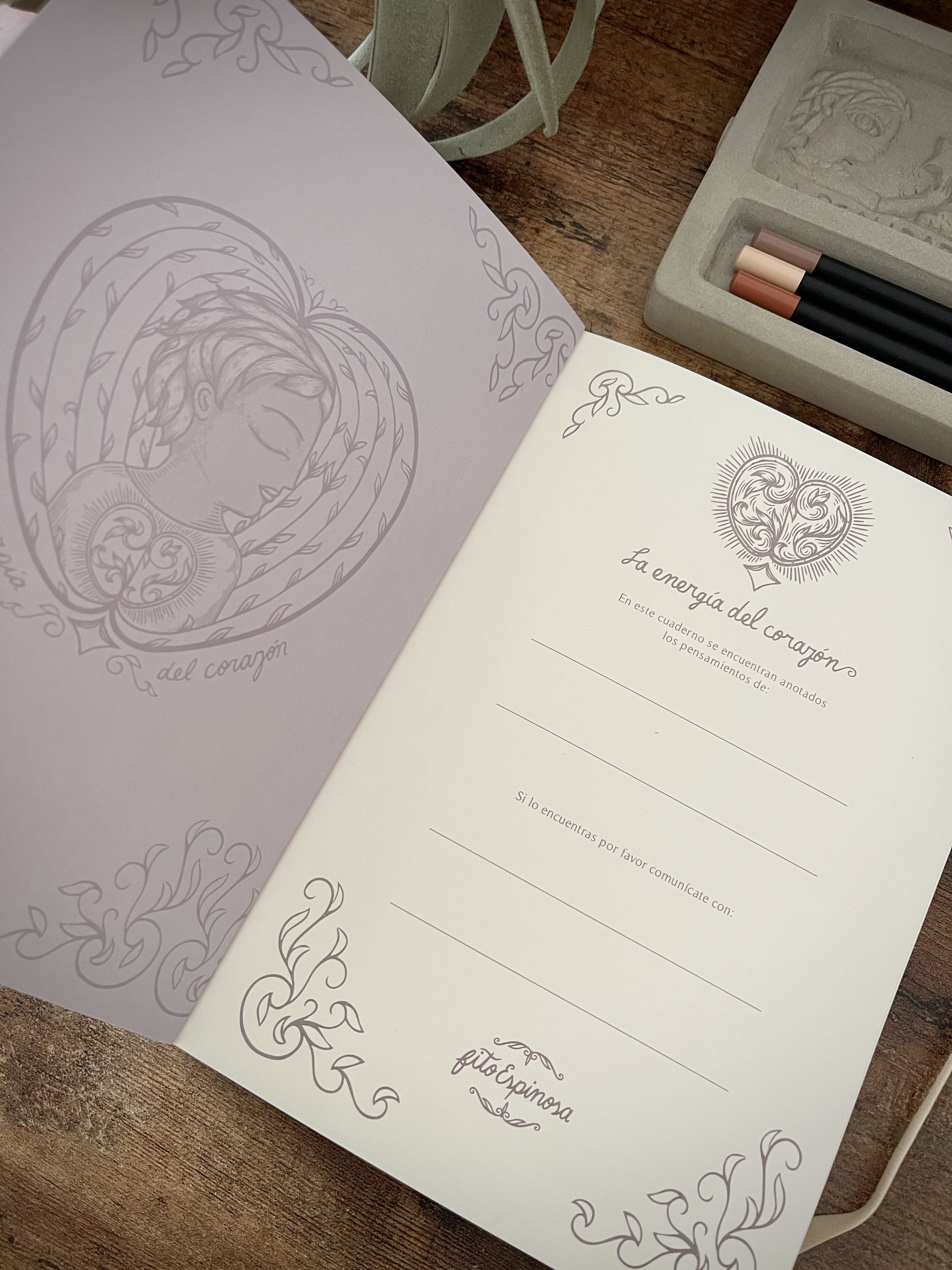 Cuaderno de tapa blanda tamaño A5, elaborado con papel avena fino de 85 grms, elástico marcador y 180 páginas interiores en blanco ideales para escribir o dibujar. Las dos primeras páginas incluyen un encabezado de Fito Espinosa, así como una ilustración a full color en exteriores. Basado en la ilustración “Corazón” de Fito Espinosa.