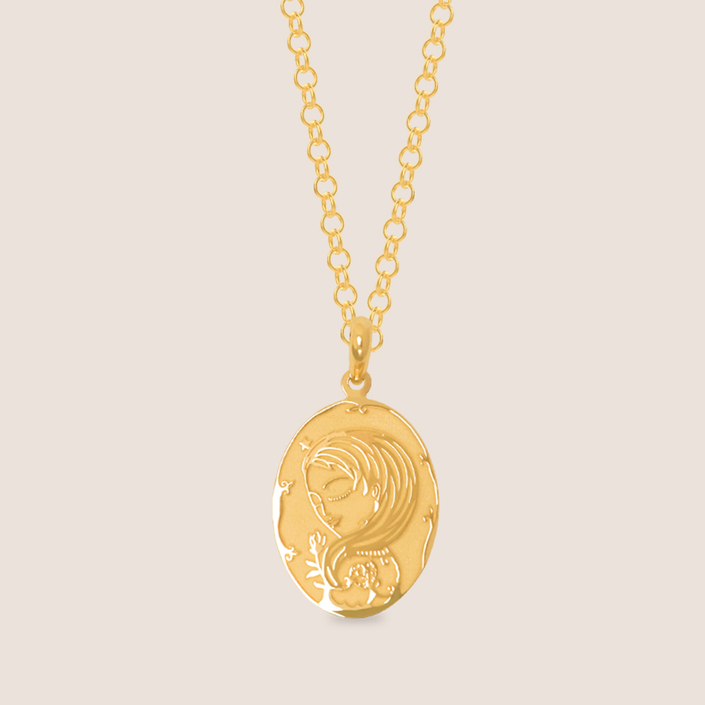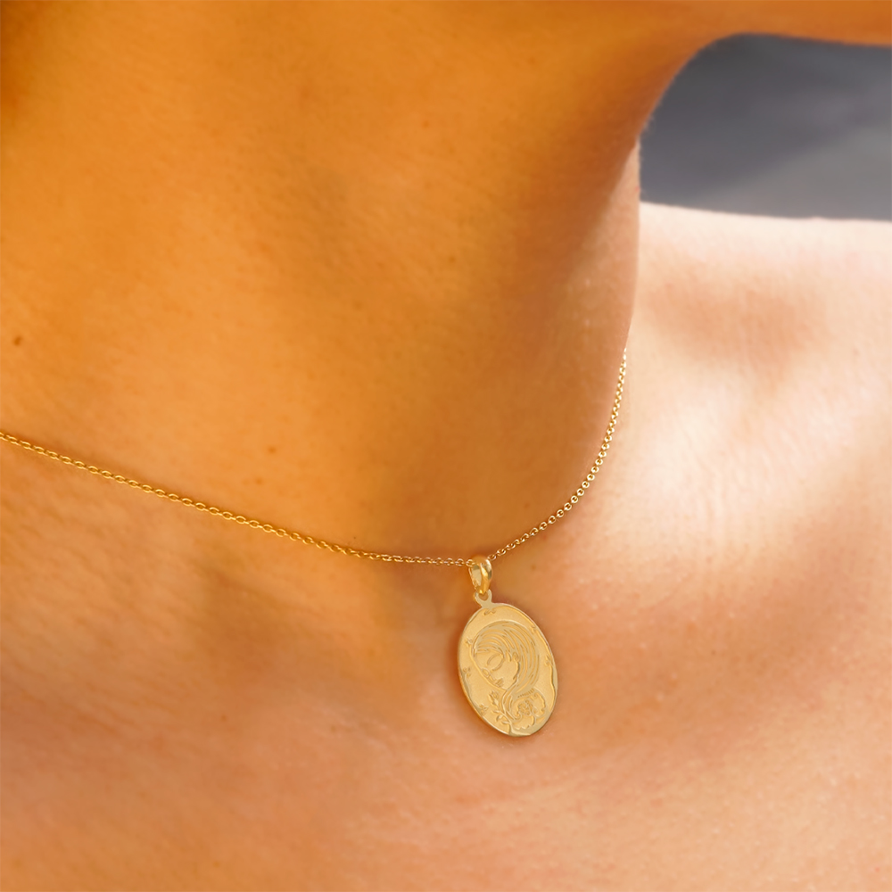 Dije en forma de oval en oro amarillo de 18K. Inspirado en la obra Conexión Sutil de Fito Espinosa