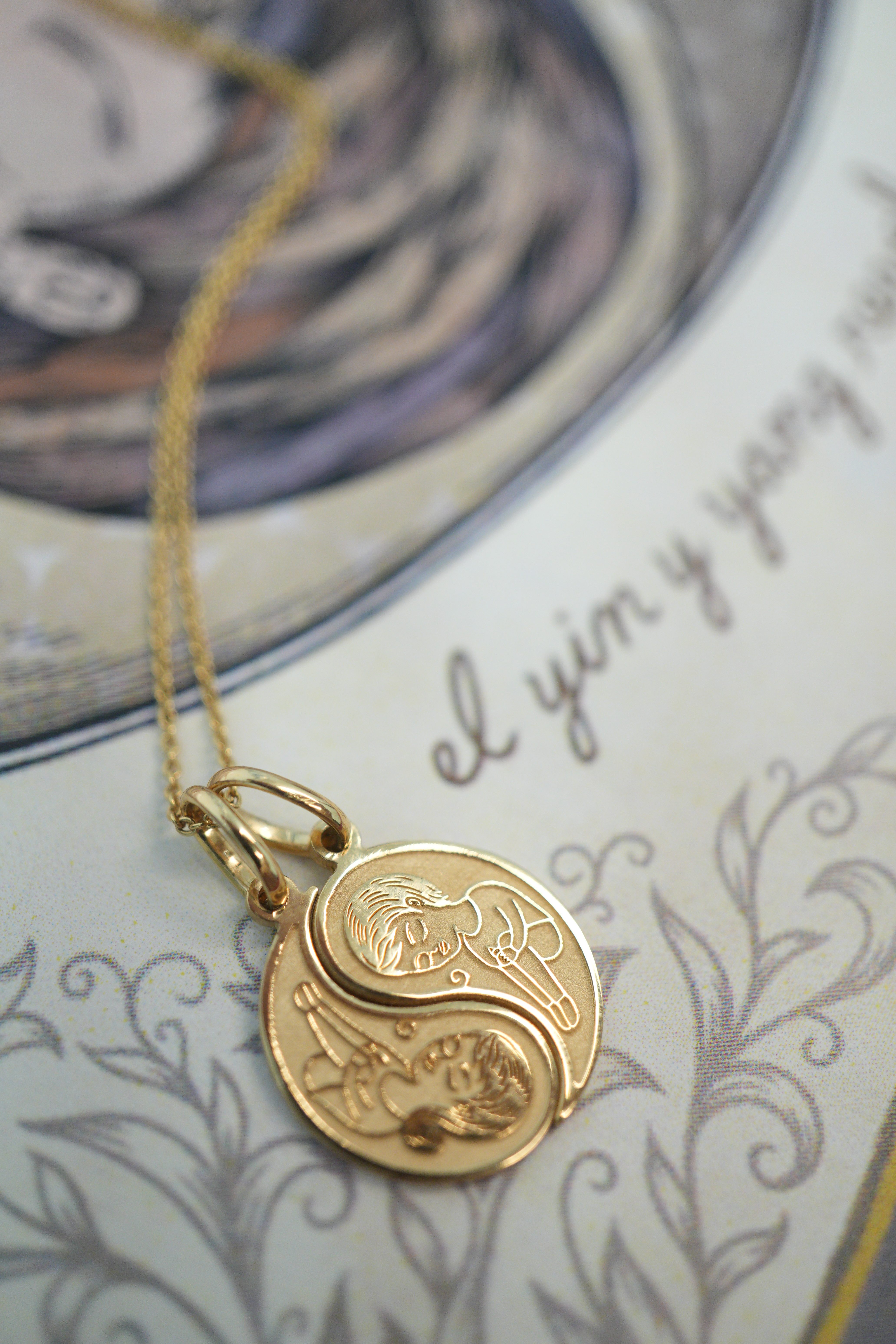 Dije Yin Yang fotograbado Hombre en oro amarillo de 18K. Inspirado en la obra Yin Yang de Fito Espinosa