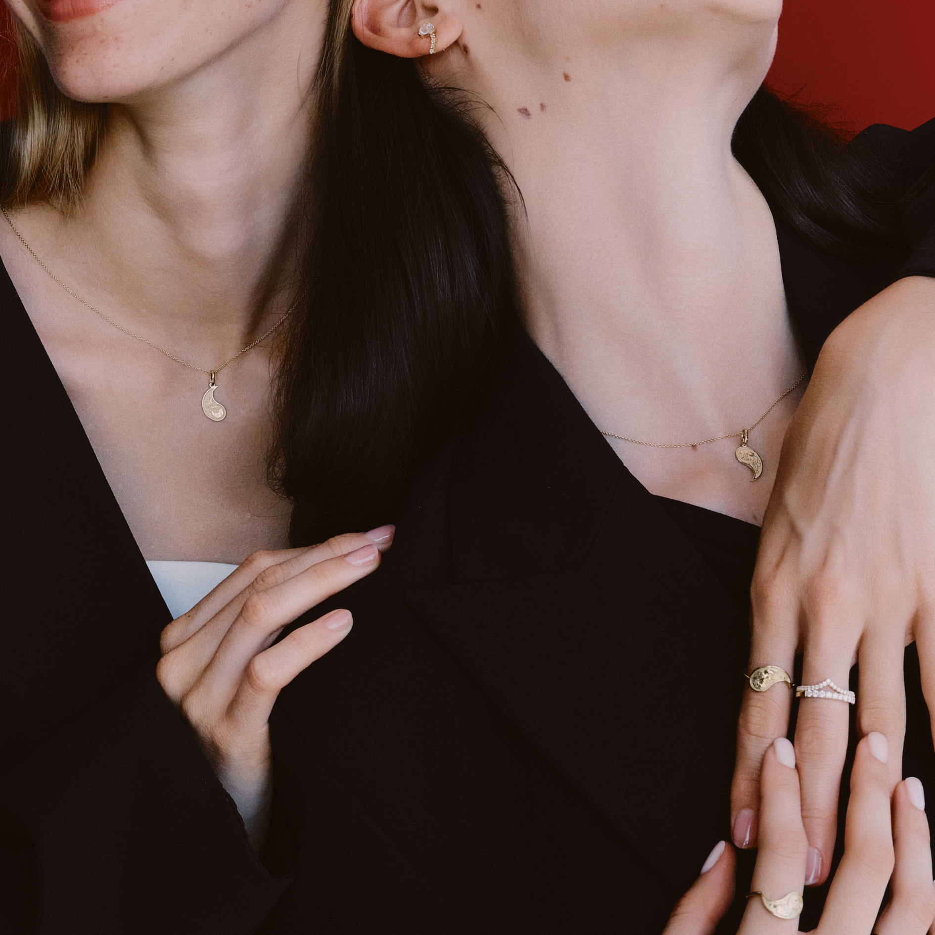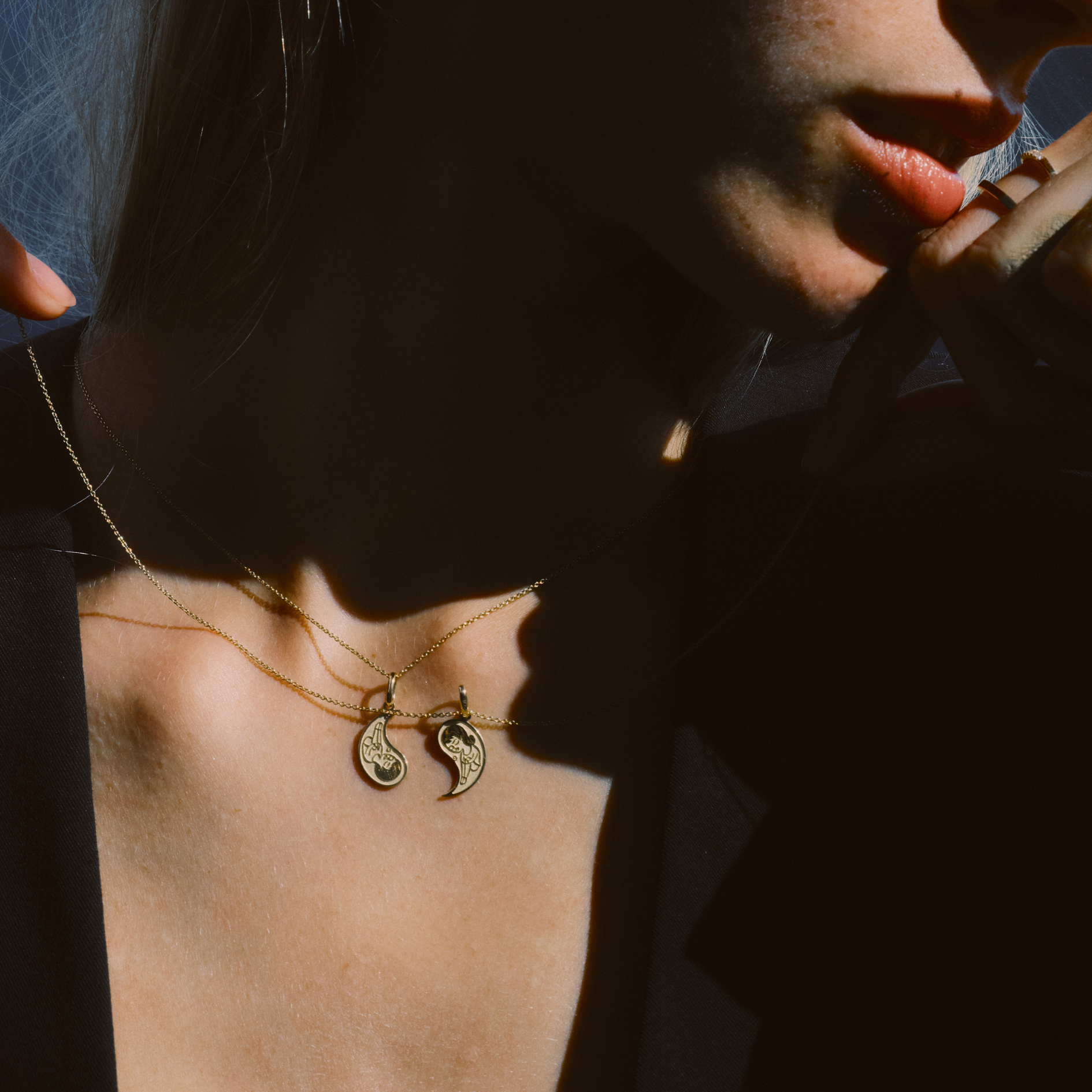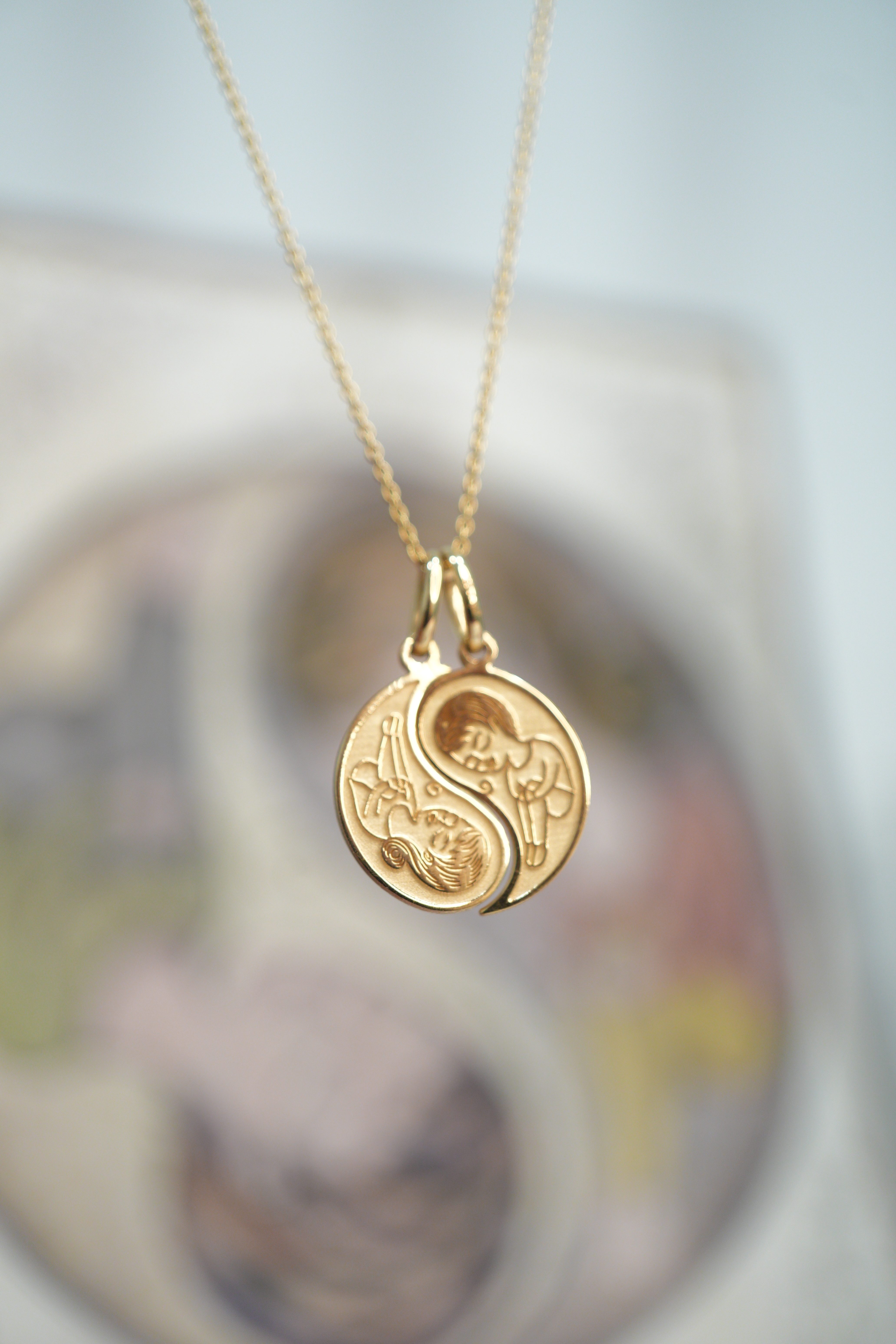 Dije Yin Yang fotograbado Mujer en oro amarillo de 18K. Inspirado en la obra Yin Yang de Fito Espinosa