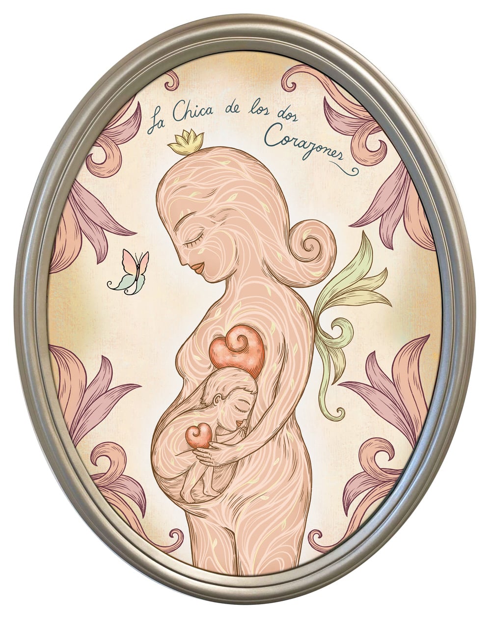 Grabado “Dos Corazones” en su versión ovalada, trabajado sobre lienzo y madera, marco plata y moldura de 4 cm. Formato elegante que aporta belleza a los espacios del hogar.
