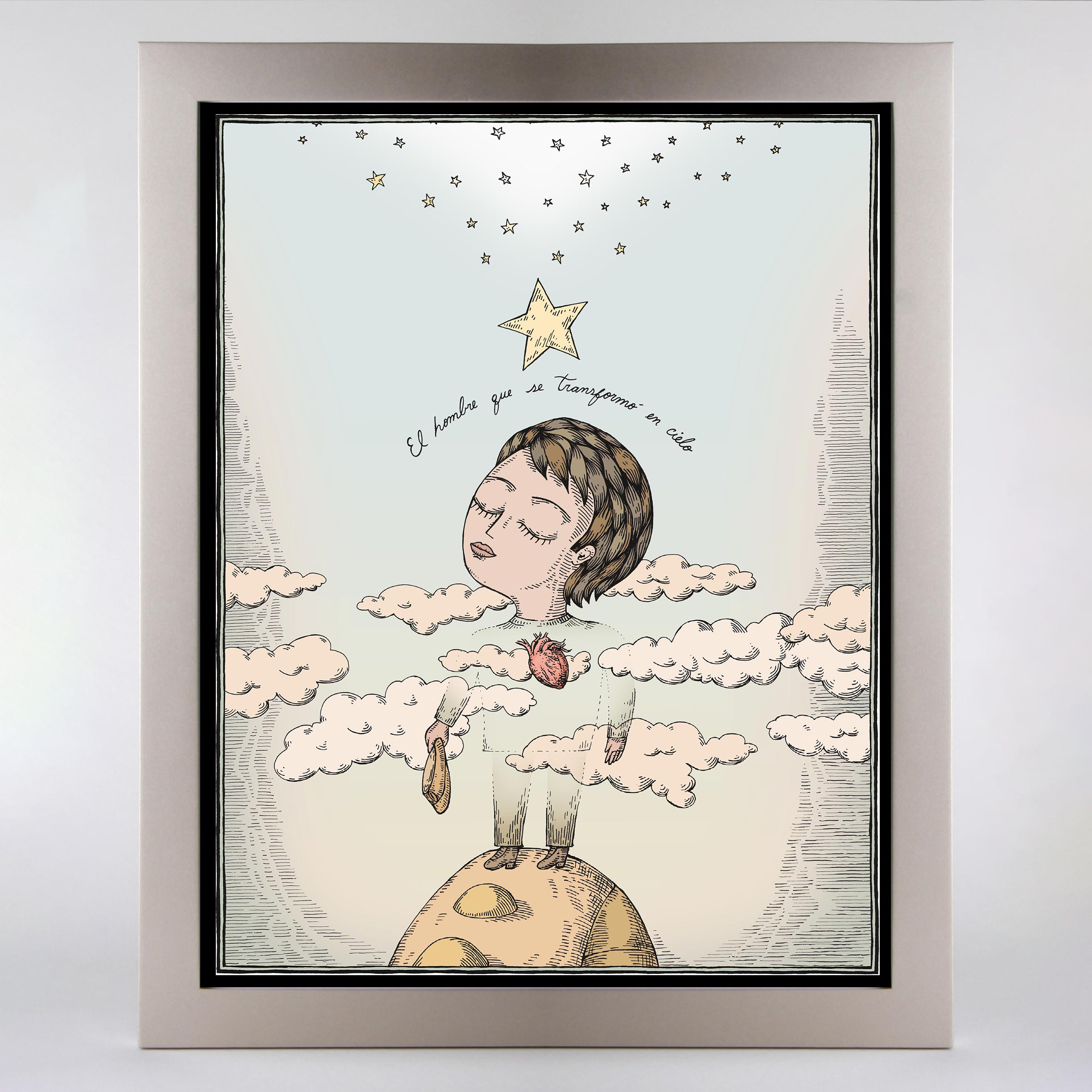 Este ejemplar es un grabado Giclée de edición limitada original de Fito Espinosa, que forma parte de la serie “Capitán de los Cielos Intermedios”, la cual busca representar el camino en la vida de un personaje y el viaje de retorno al hogar que muchos anhelamos.