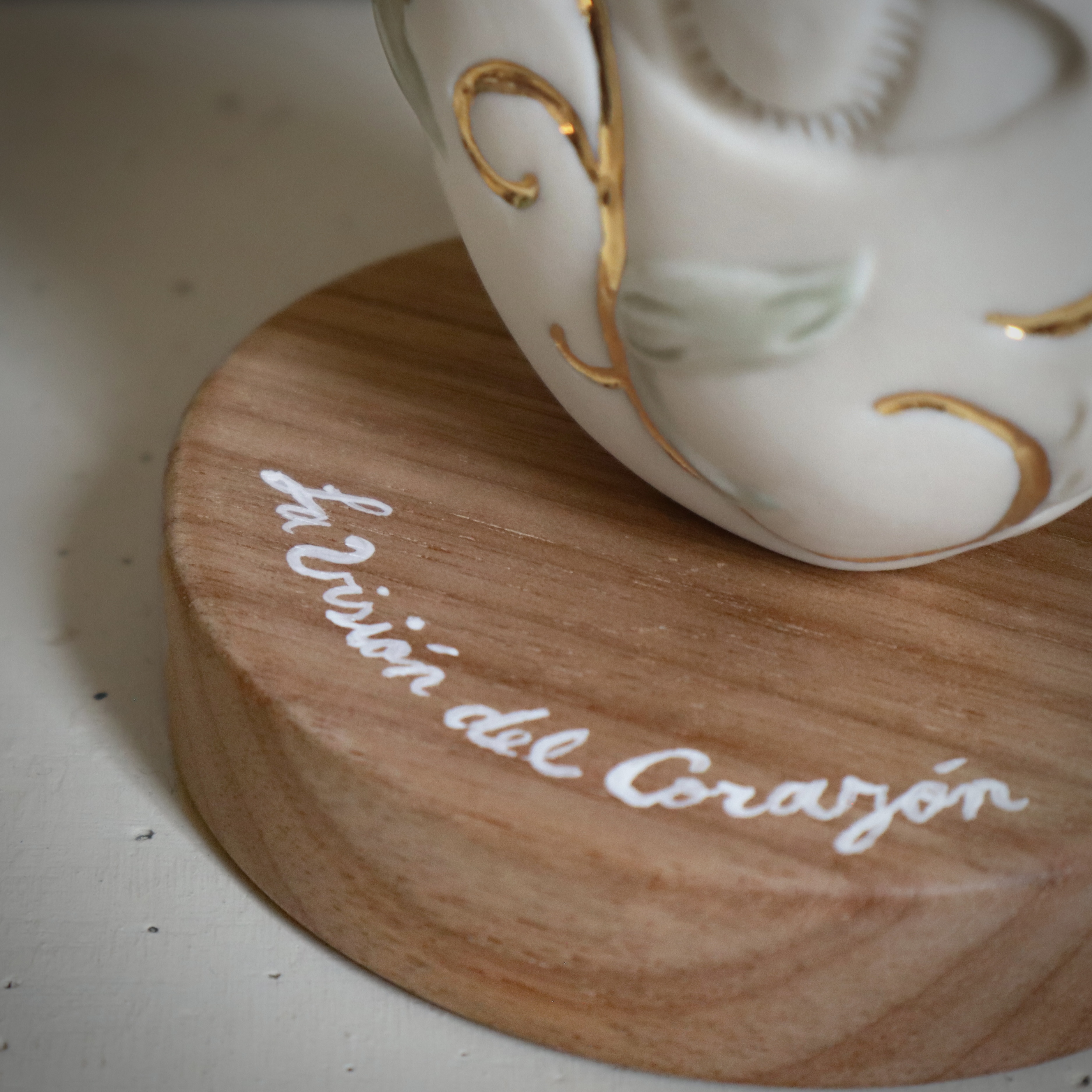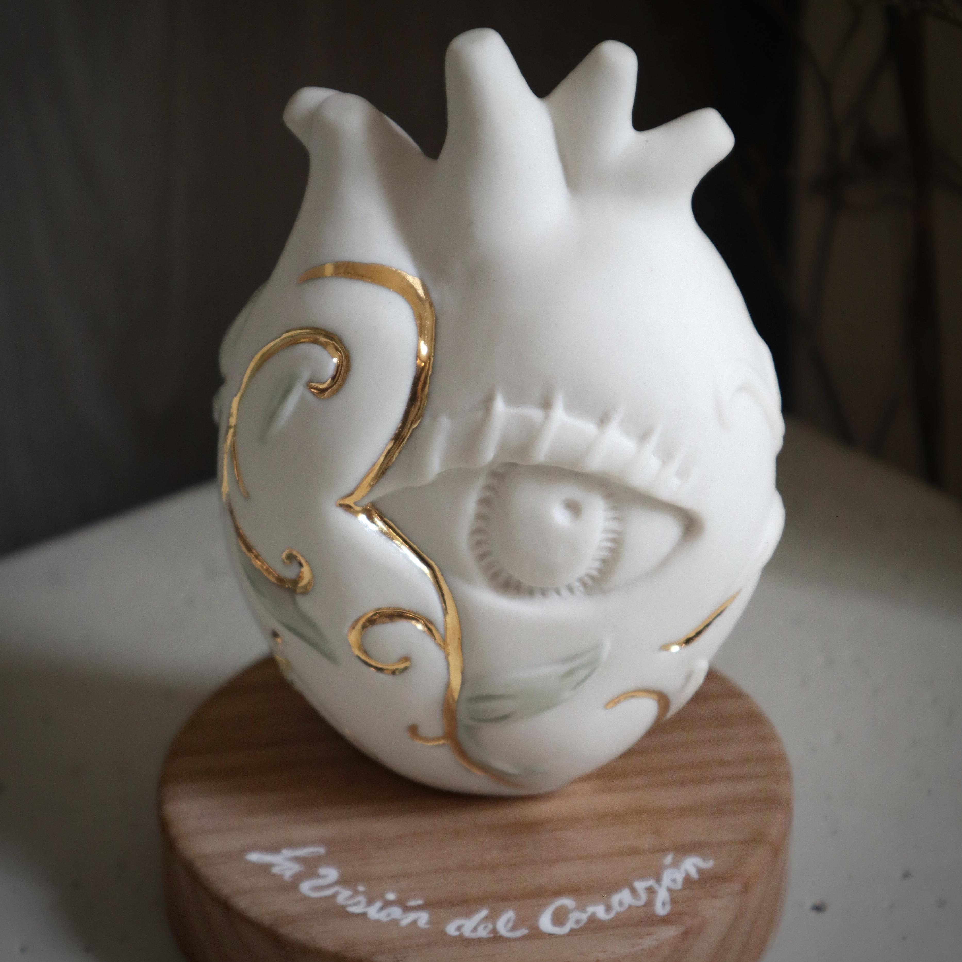 ➝ Solo 5 ejemplares [ 5/5 / Porcelana, Oro 18K, Base en madera Cachimbo ]