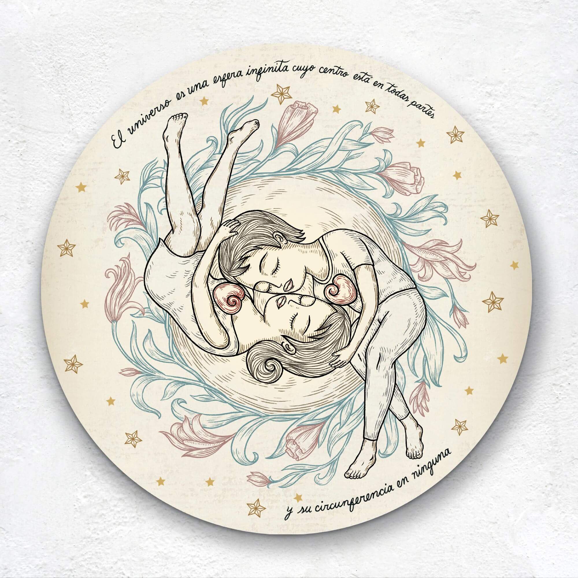 Grabado “Esfera 2” en su versión circular, trabajado sobre madera, bañado en resina. Formato elegante que aporta a los espacios el brillo natural y reflejo a manera de espejo.