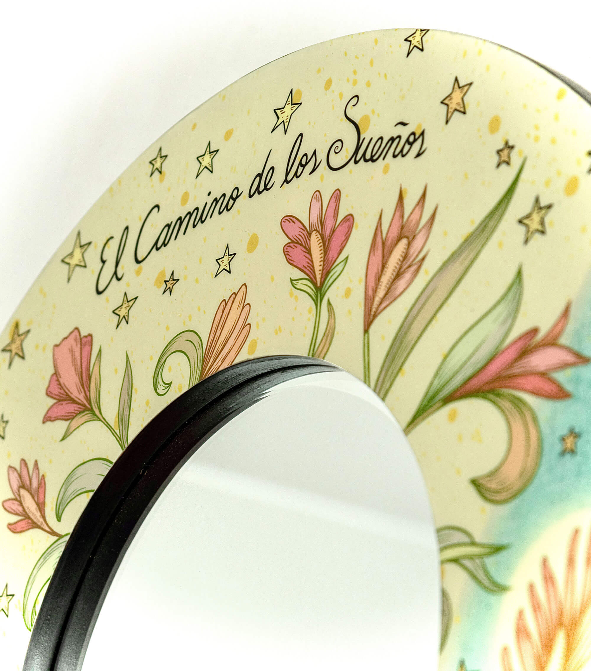 Espejo “Camino de Sueños” con bisel de 1 cm + grabado trabajado sobre madera y bañado en resina. Formato elegante que aporta a los espacios un brillo natural.