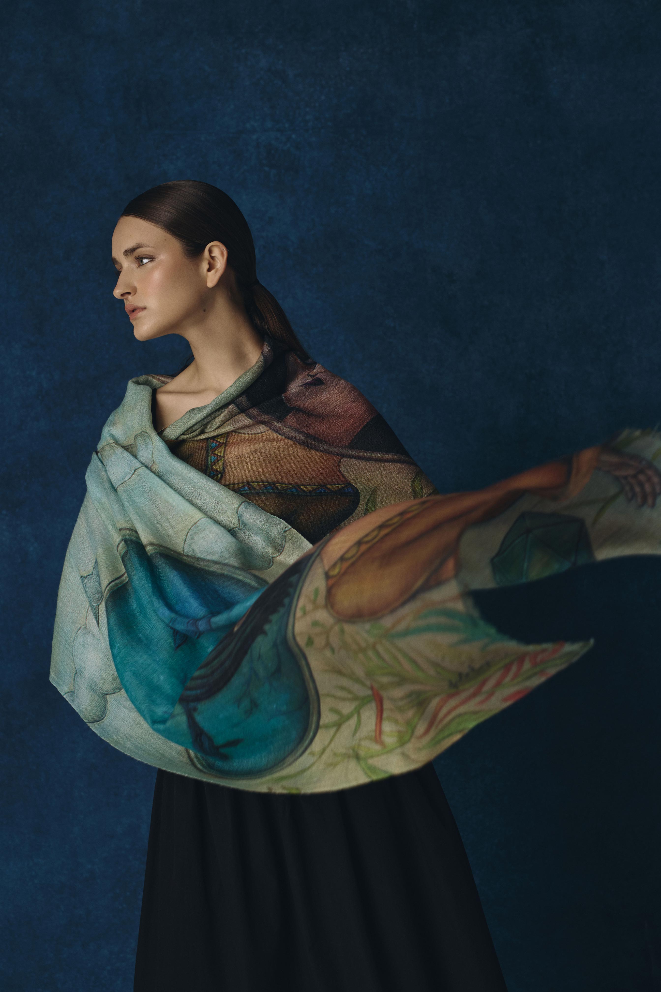 En esta colaboración entre Fito Espinosa y KUNA, las pinturas originales del artista se reinterpretan sobre estolas de Baby Alpaca y Seda, convirtiendo el arte en abrigo y la fibra en mensaje.