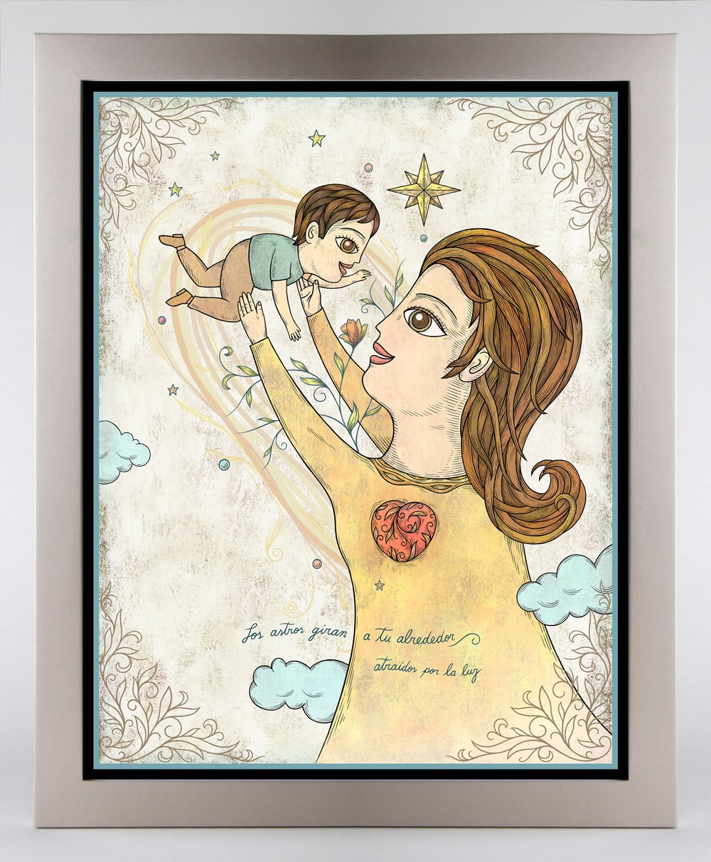 Este ejemplar es un grabado Giclée de edición limitada original de Fito Espinosa, que forma parte de la serie “Te Llevo en mi Universo”. Este conjunto de dibujos busca representar la sabiduría, el espíritu y poder contenidos en cada tótem y conectarnos con su gran misterio.