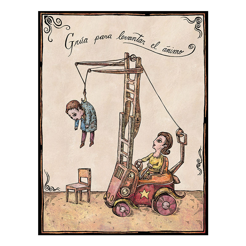 Este ejemplar es un grabado Giclée de edición limitada original de Fito Espinosa que forma parte de la serie “Máquinas”. Las ilustraciones aquí reunidas son algunas de las más antiguas, concebidas por el artista en su afán por inventar herramientas útiles como nuevas maneras de vivir en el mundo.
