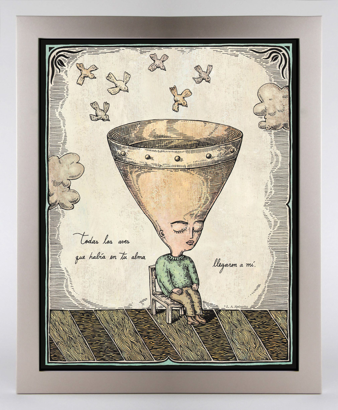 Este ejemplar es un grabado Giclée de edición limitada original de Fito Espinosa que forma parte de la serie “Teletransportes”. En estas ilustraciones Fito representa la idea del viaje como un cambio de estado interno, que ocurre mas allá de transportarnos físicamente.