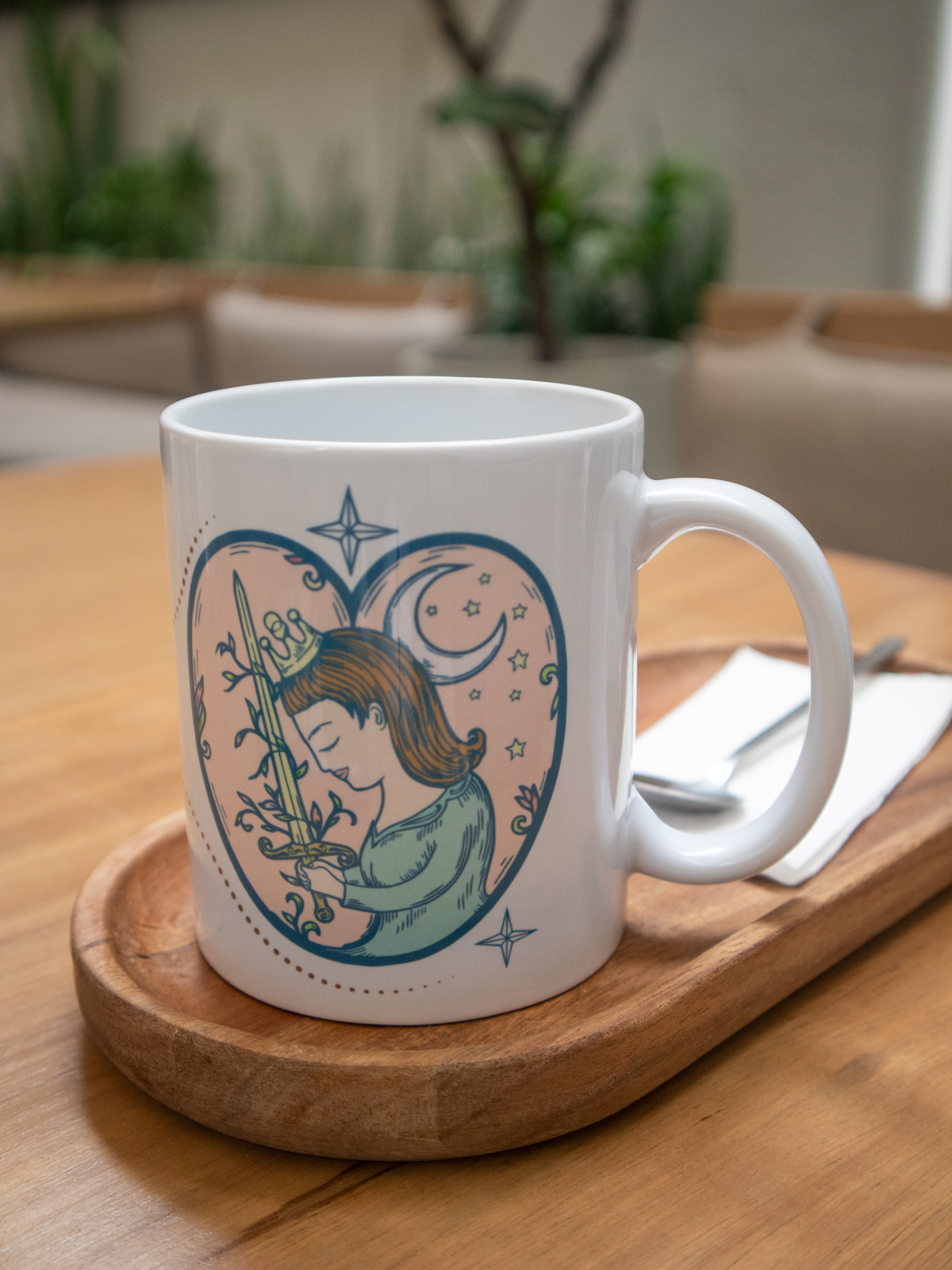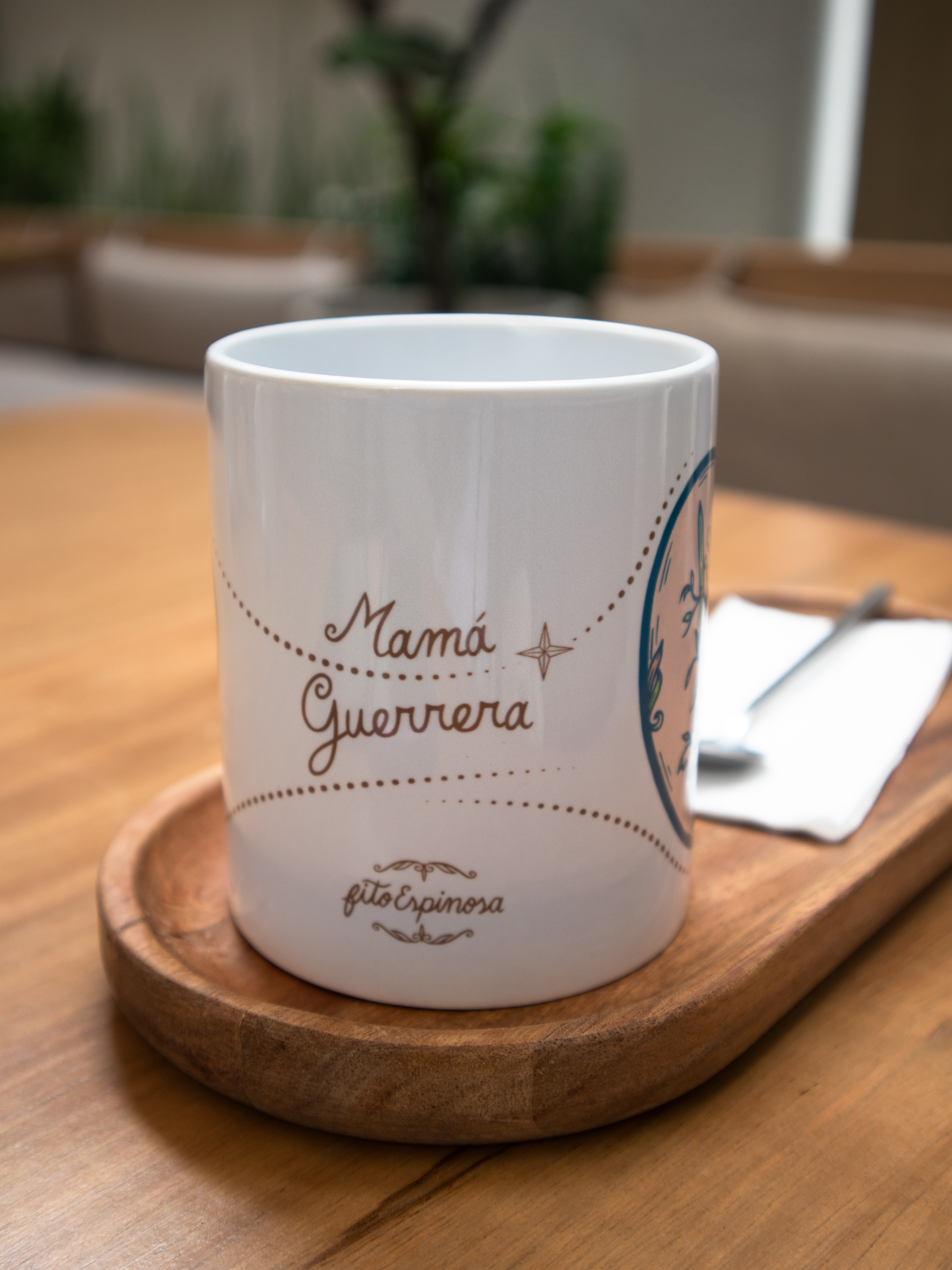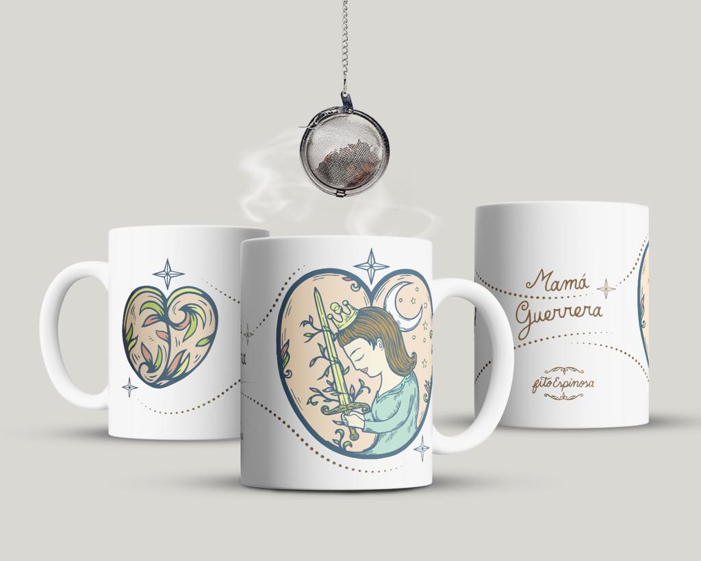Mug de cerámica-loza ideal para infusiones, café o tu bebida favorita. Diseño inspirado en la ilustración “Warrior” de Fito Espinosa.