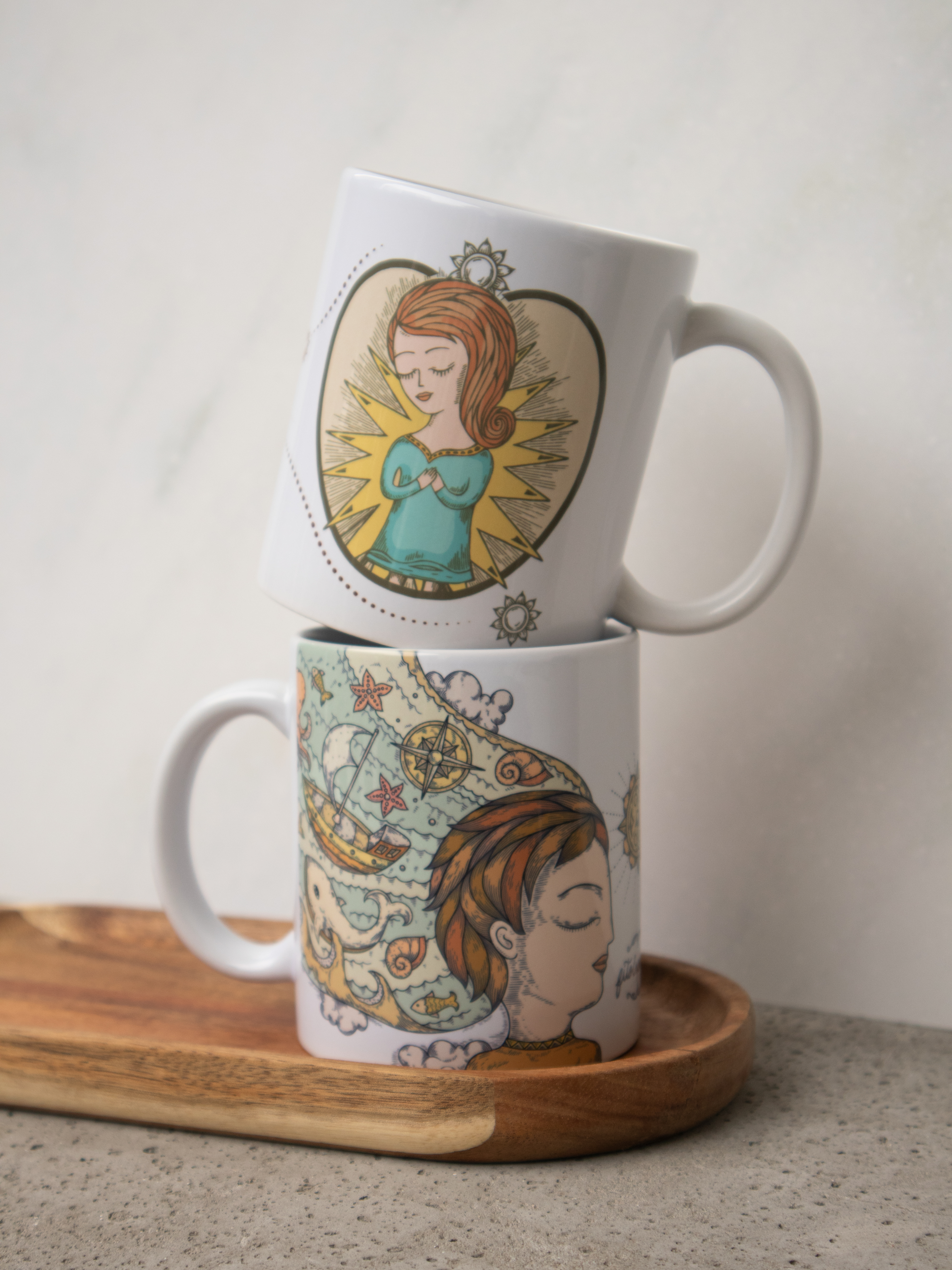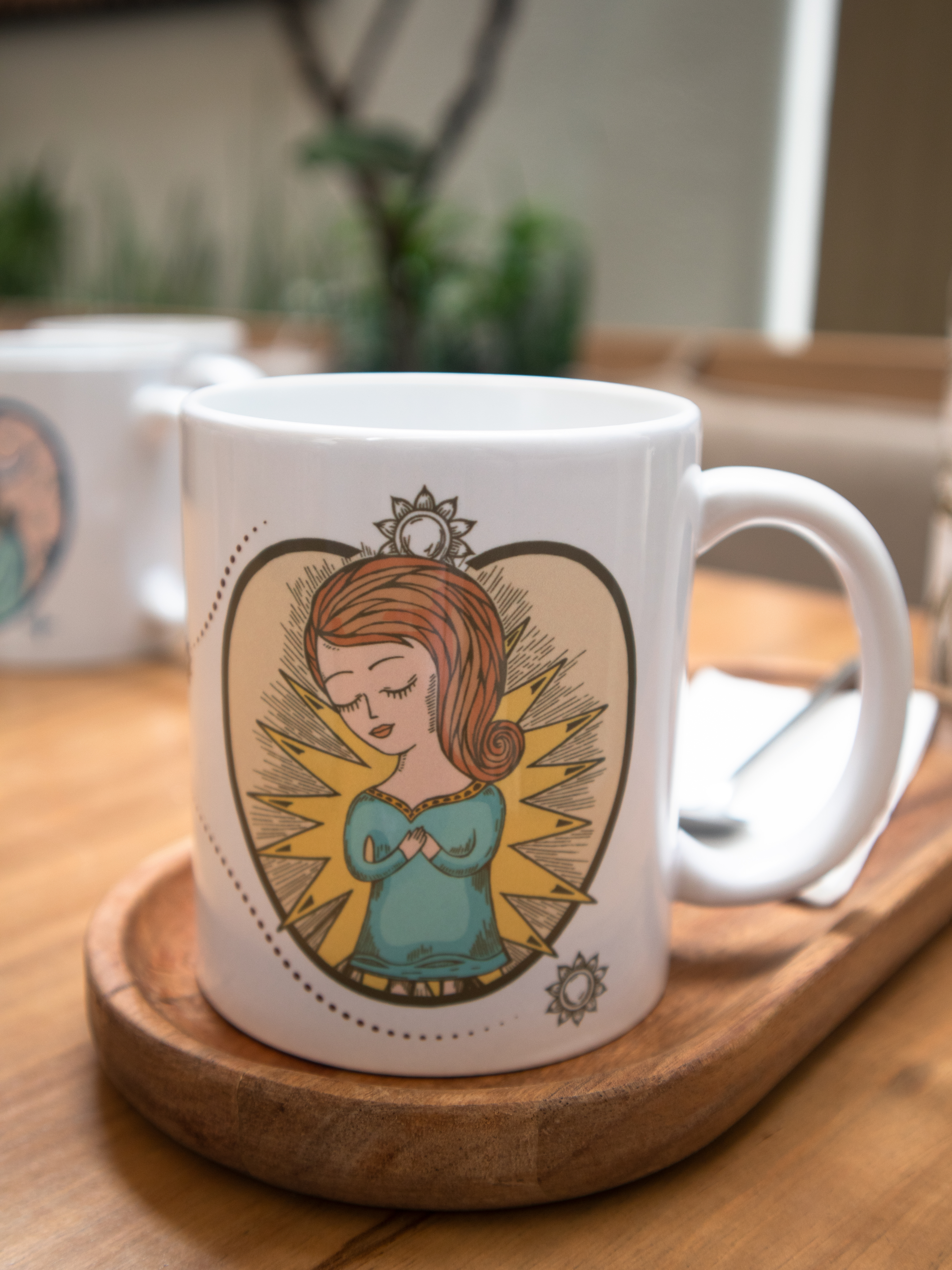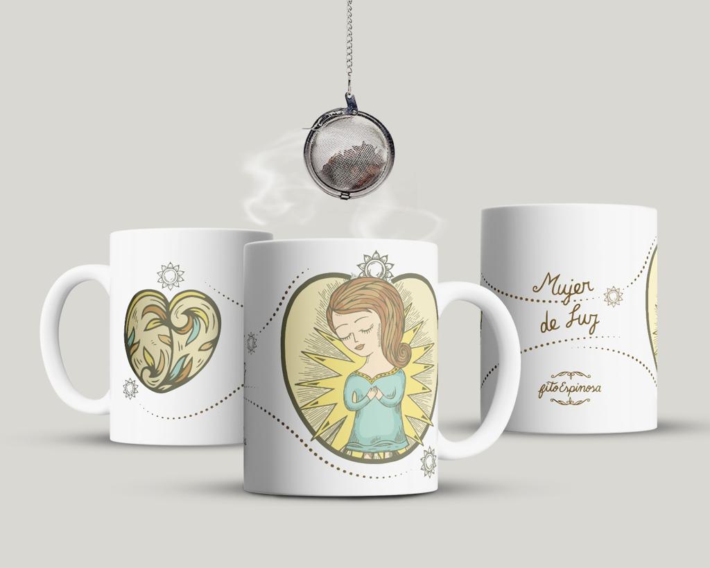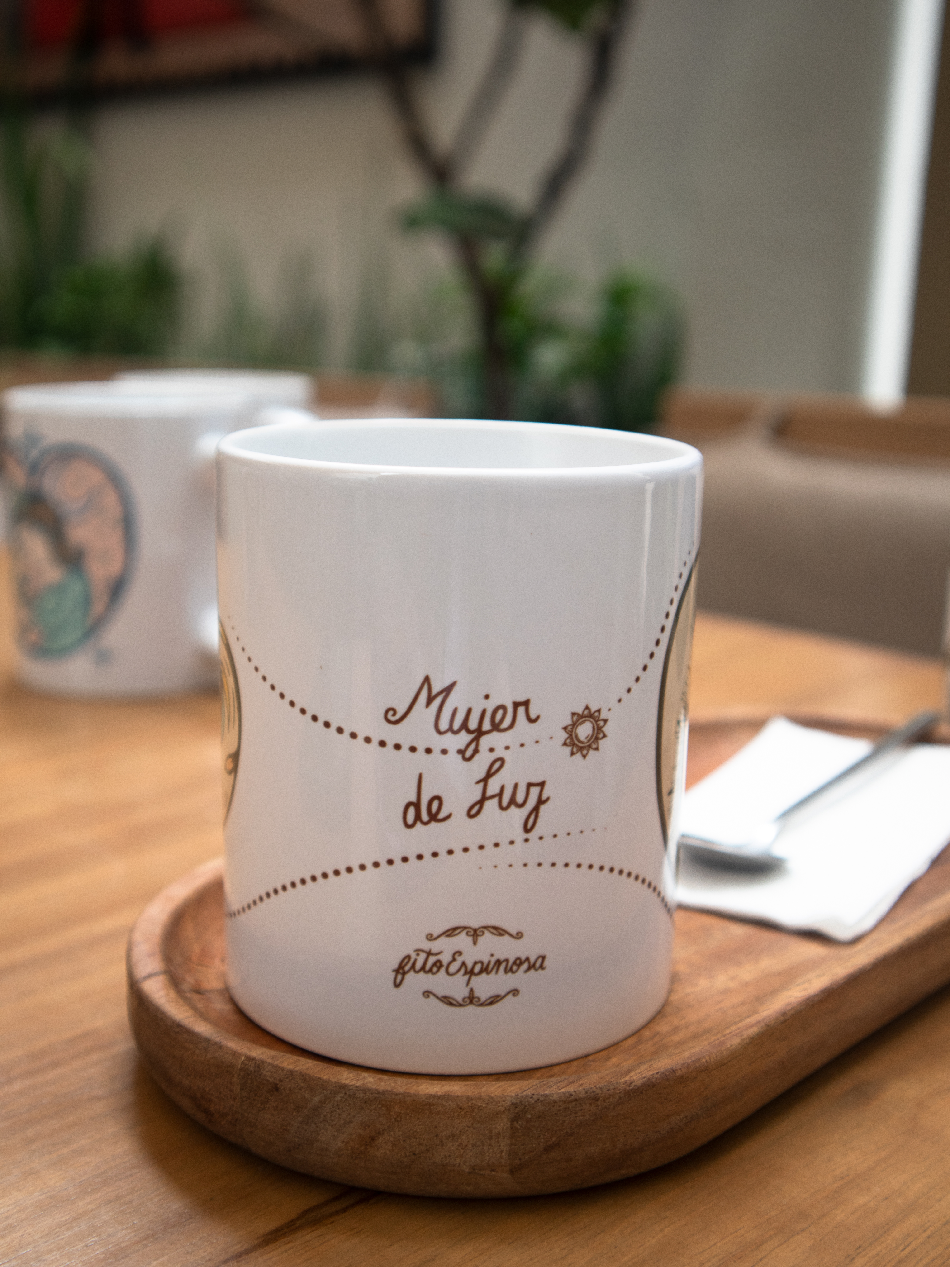 Mug de cerámica-loza ideal para infusiones, café o tu bebida favorita. Diseño inspirado en la ilustración “Mujer de Luz” de Fito Espinosa.