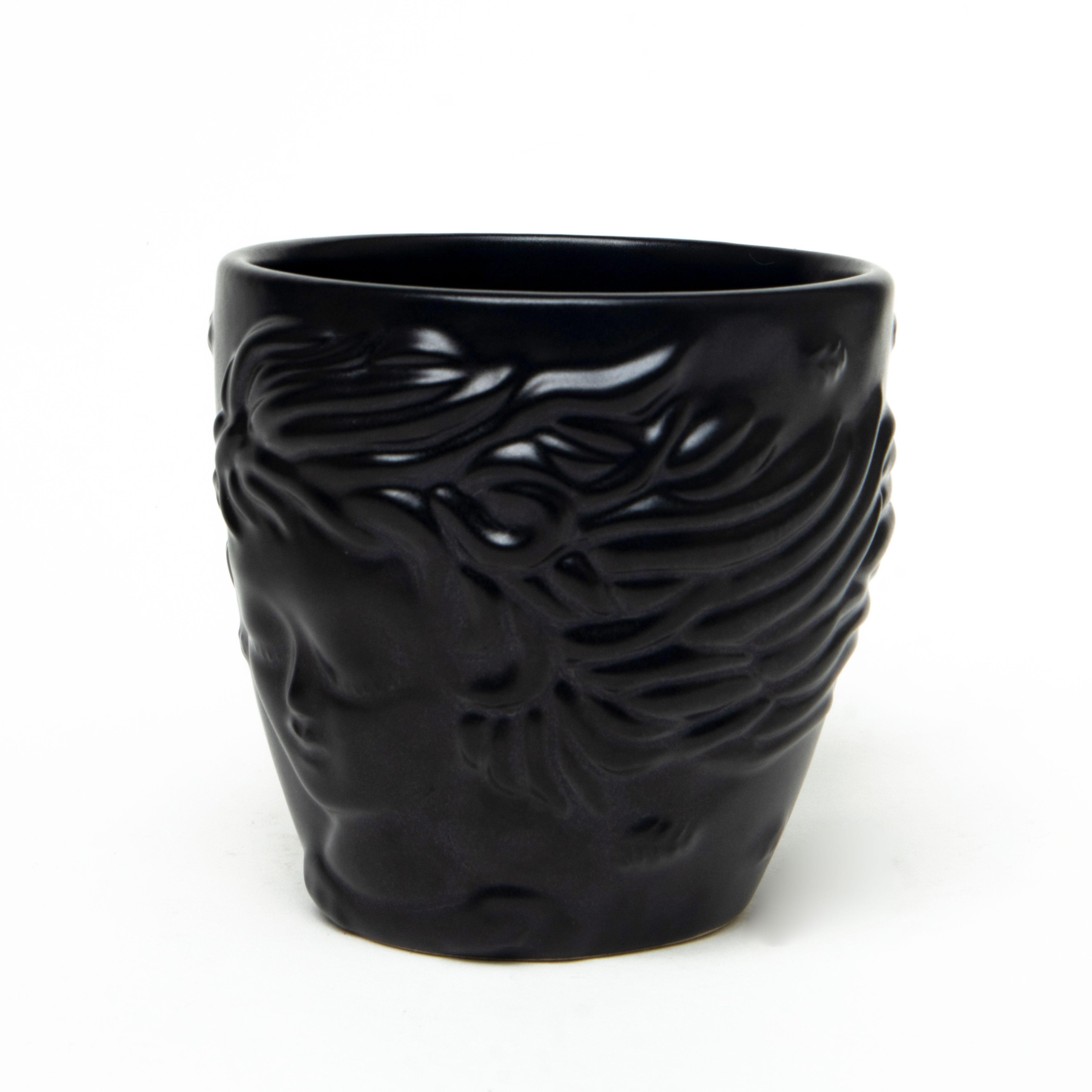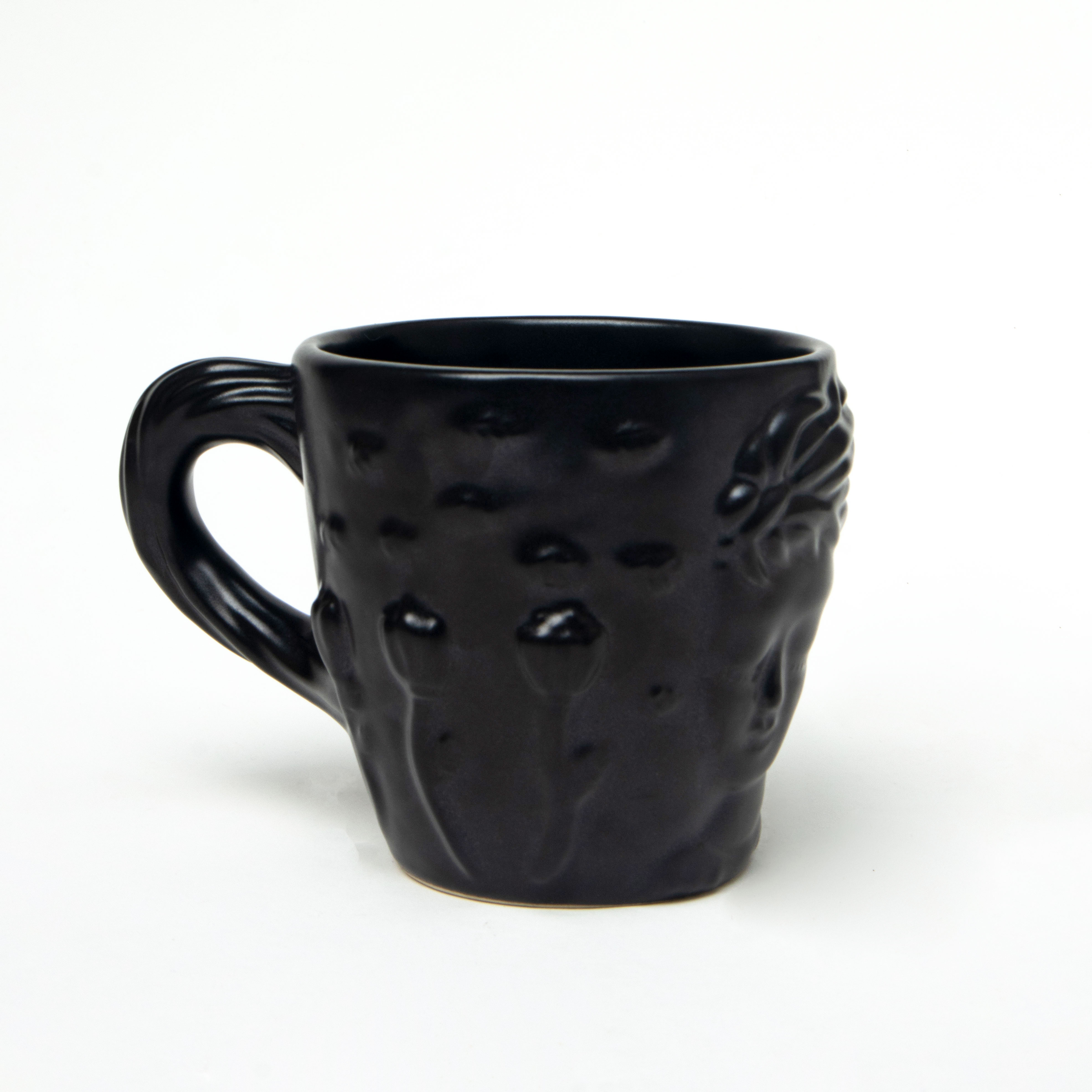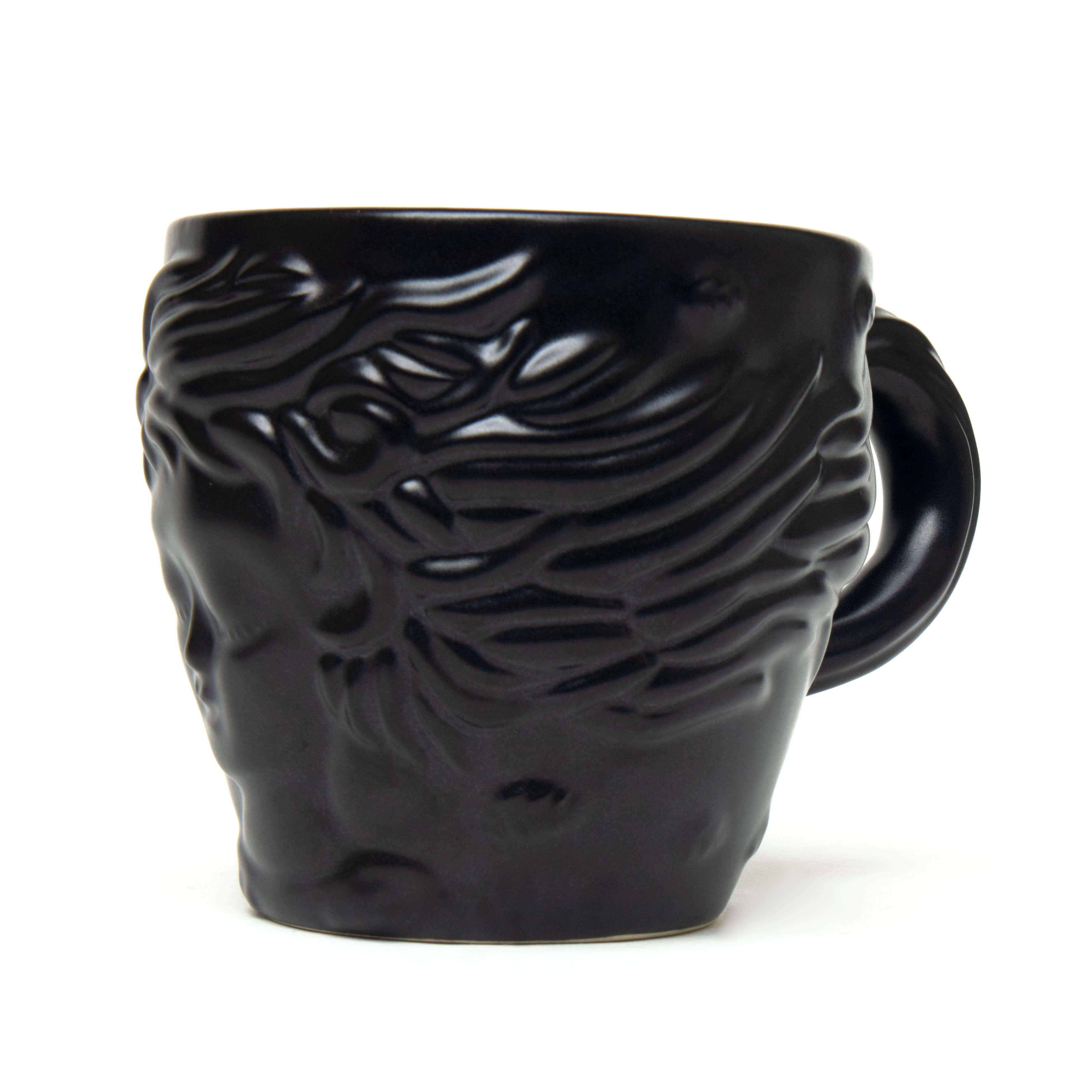 Mug Viento en su versión negra. Pieza que aporta modernidad y disrupción a tu espacio, ideal para el té o café largo. Inspirada en la ilustración “Viento” de Fito Espinosa. Está hecha a mano en arcilla natural, acabado mate y horneada a altas temperaturas.