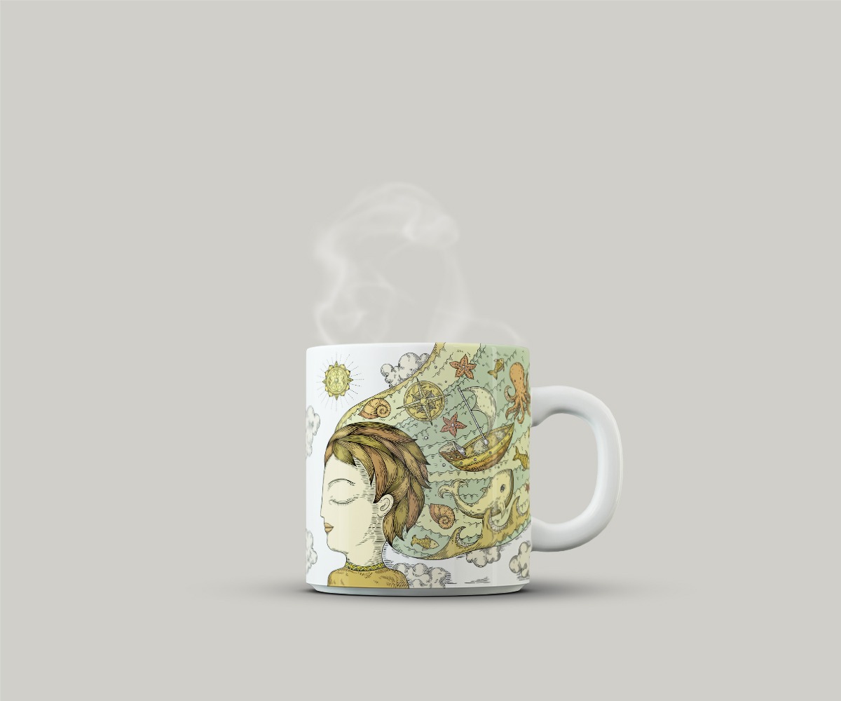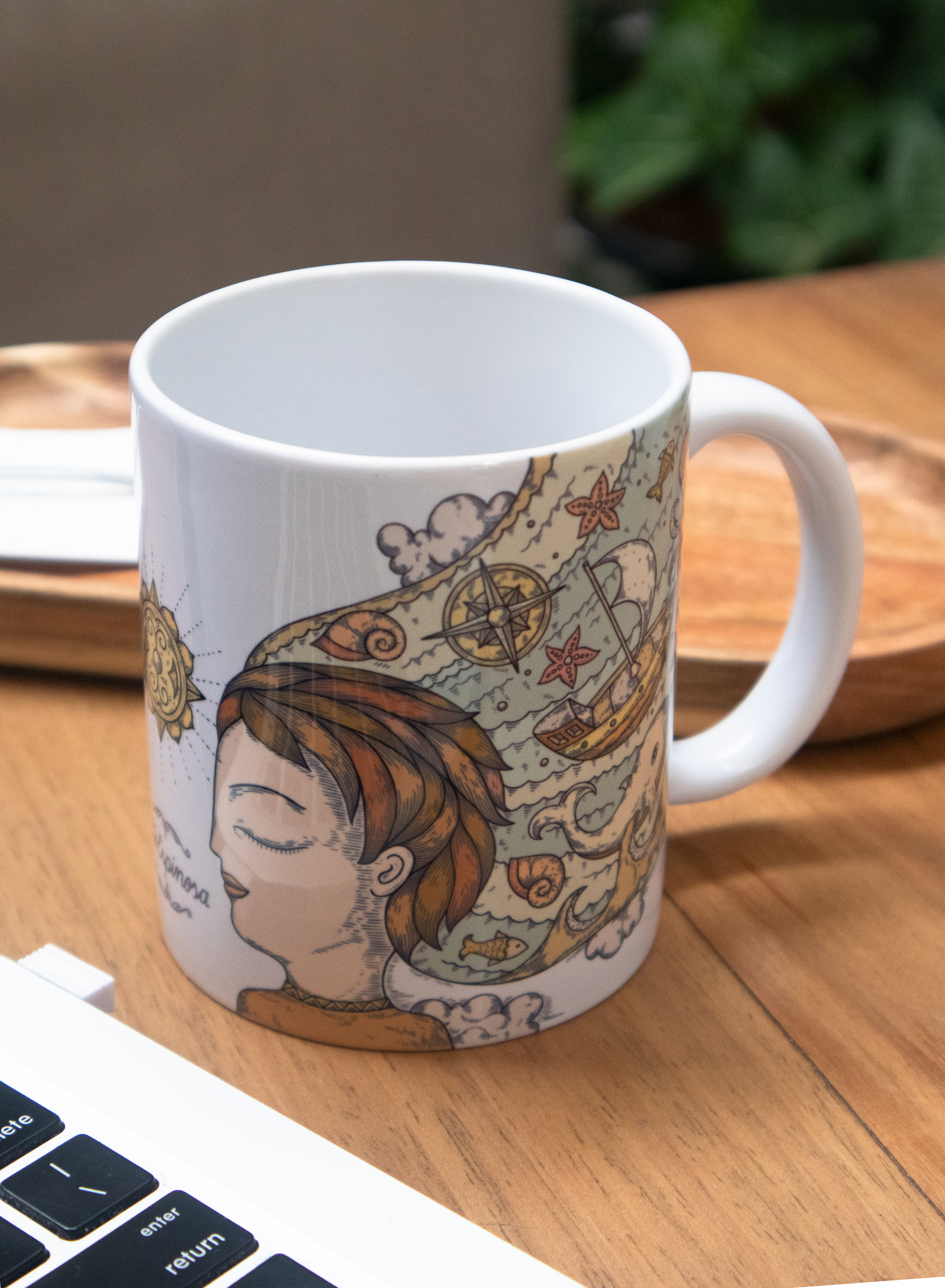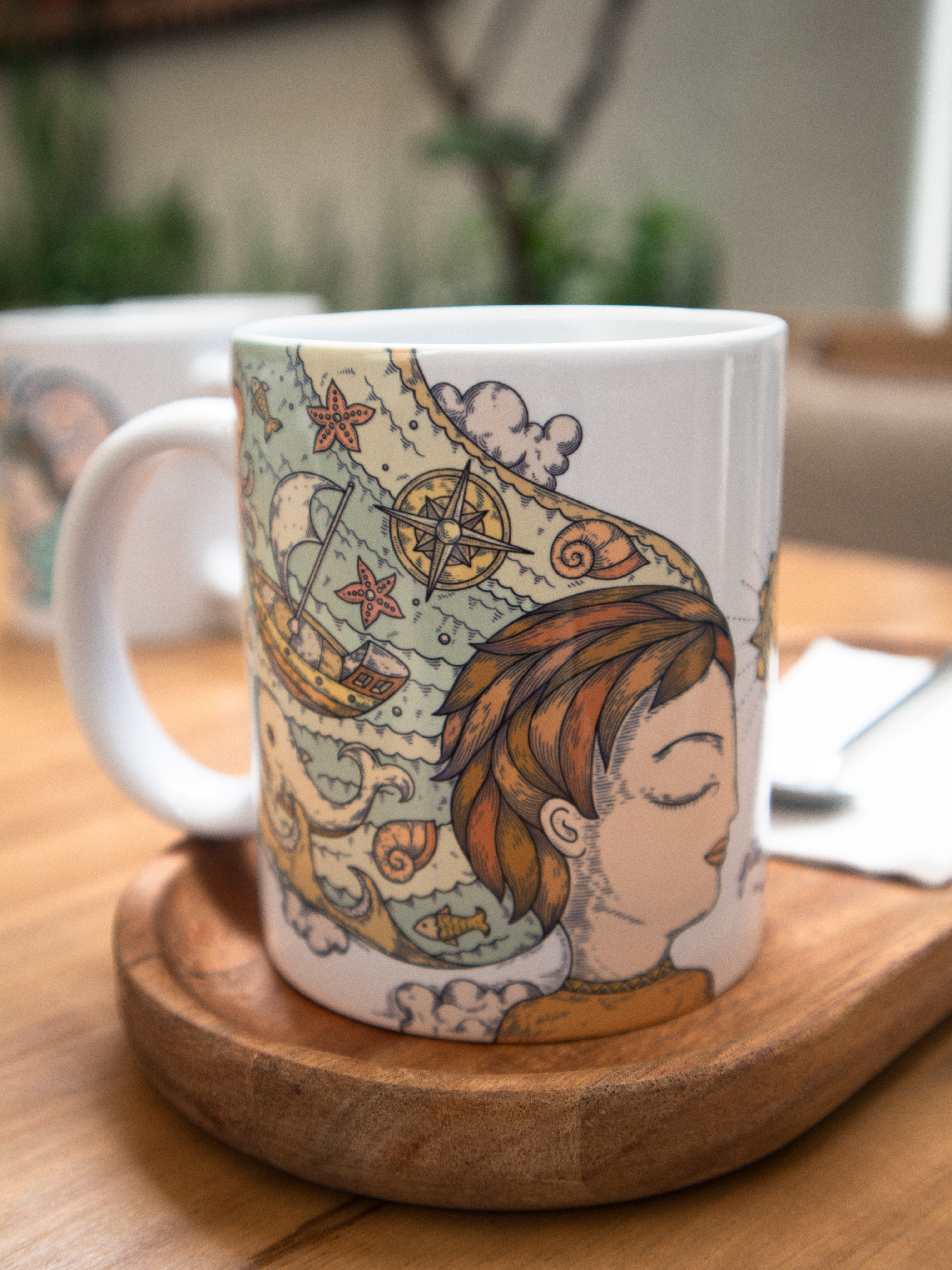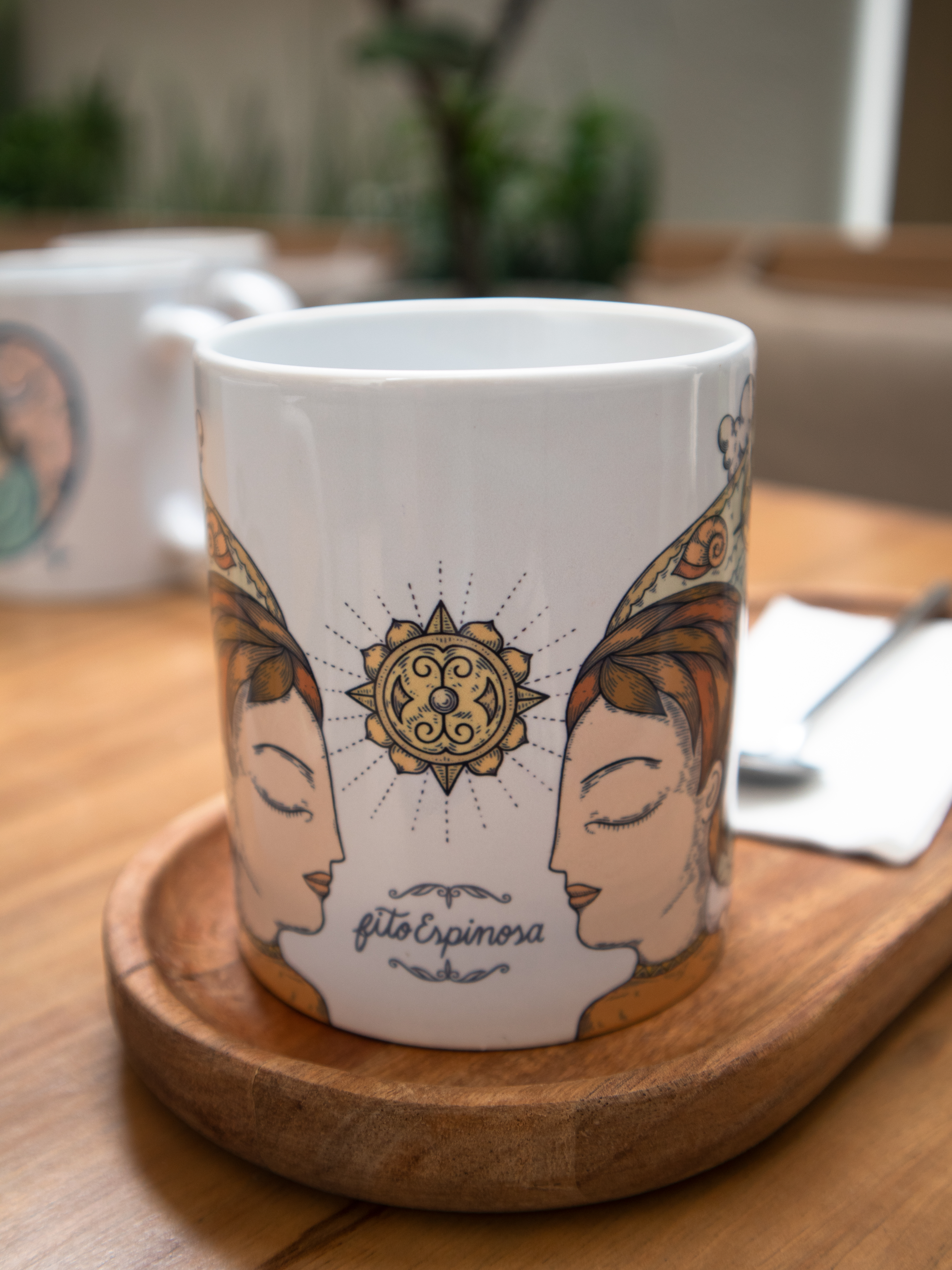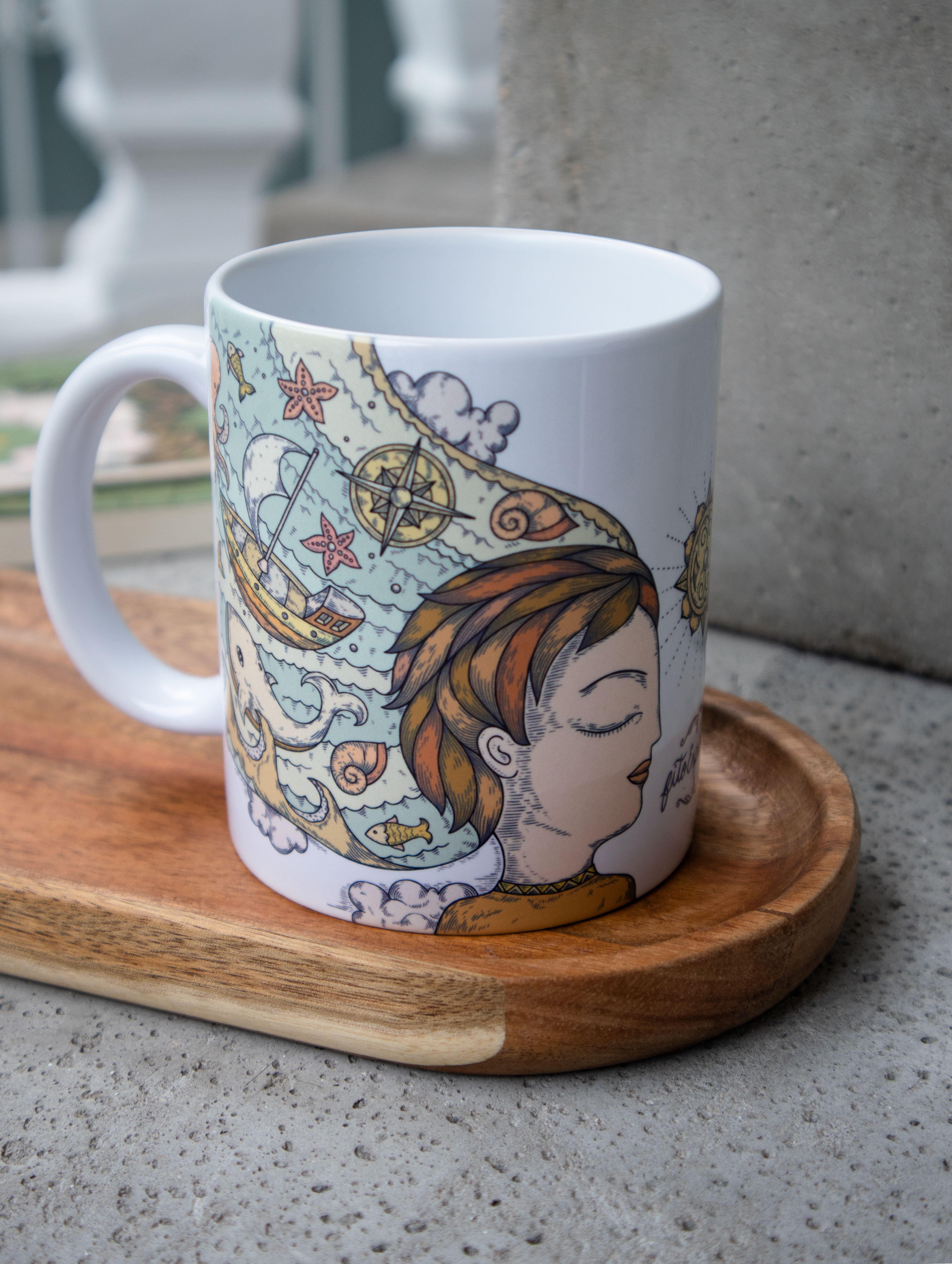 Mug de cerámica-loza ideal para infusiones, café o tu bebida favorita. Diseño inspirado en la ilustración “Vivir de Verano” de Fito Espinosa.