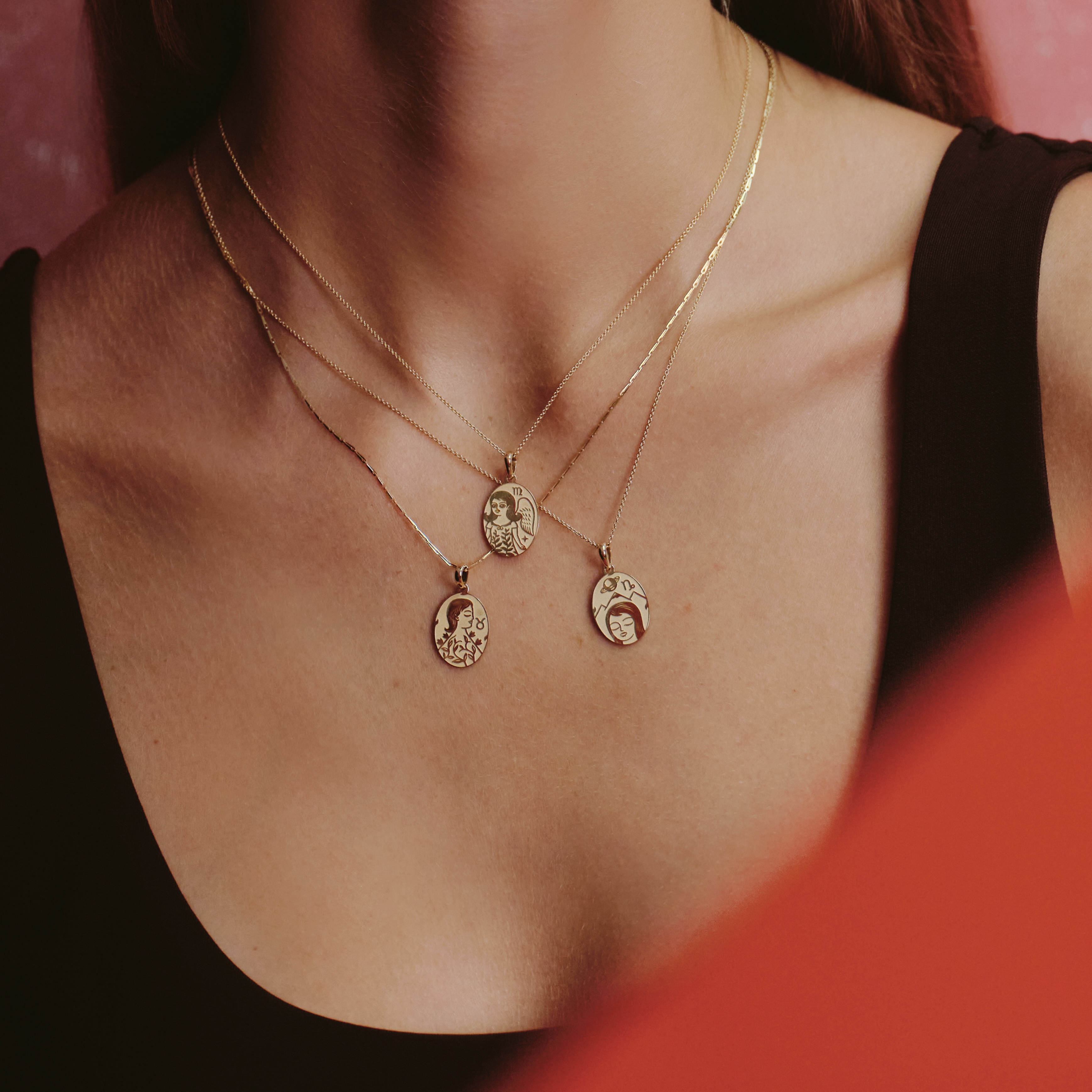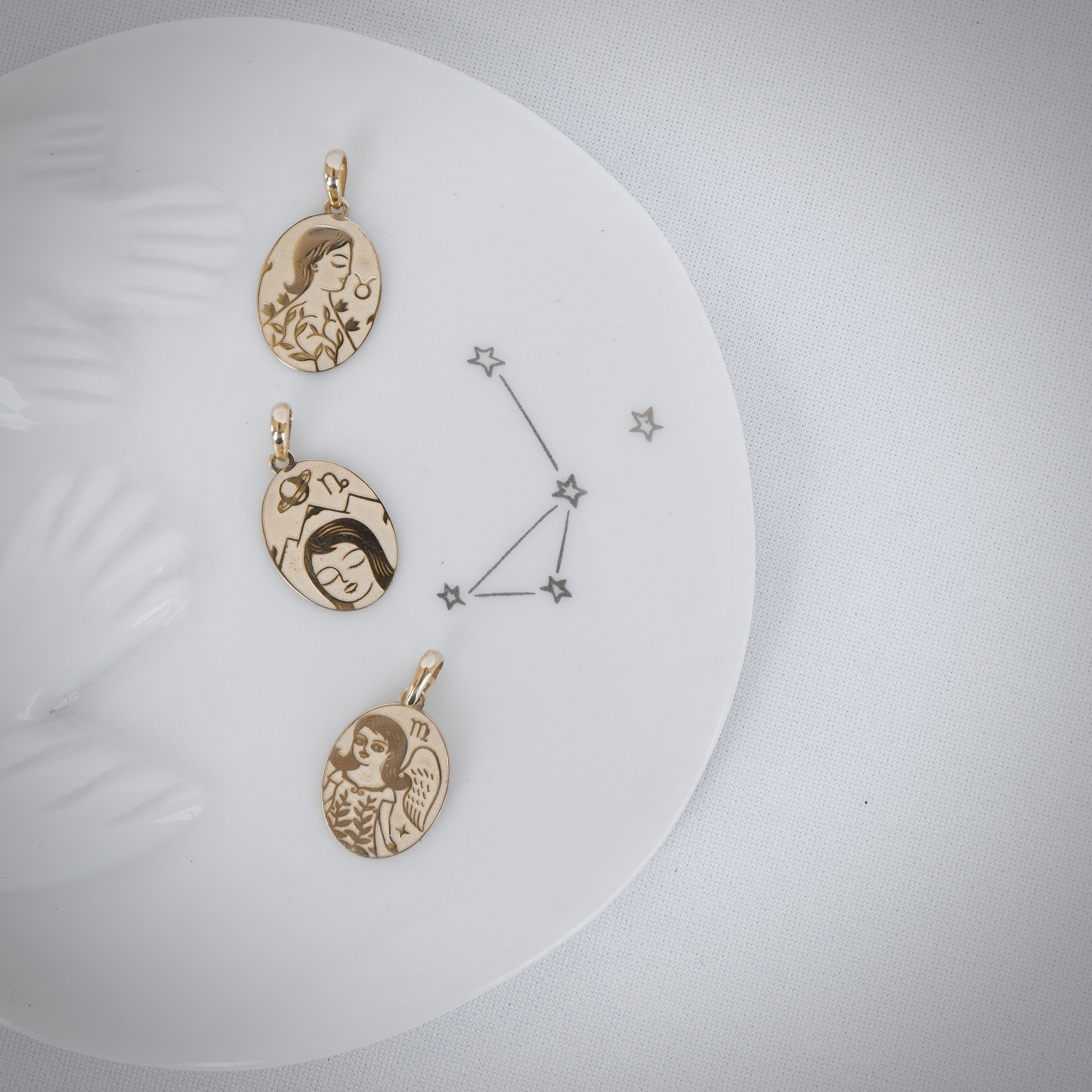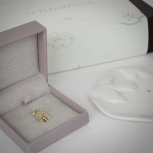 Cada pack Doce Elementos incluye un dije en oro 18K, un joyero Constelación de porcelana y un packaging especialmente diseñado para la colección, pensado para acompañar y resguardar la pieza.