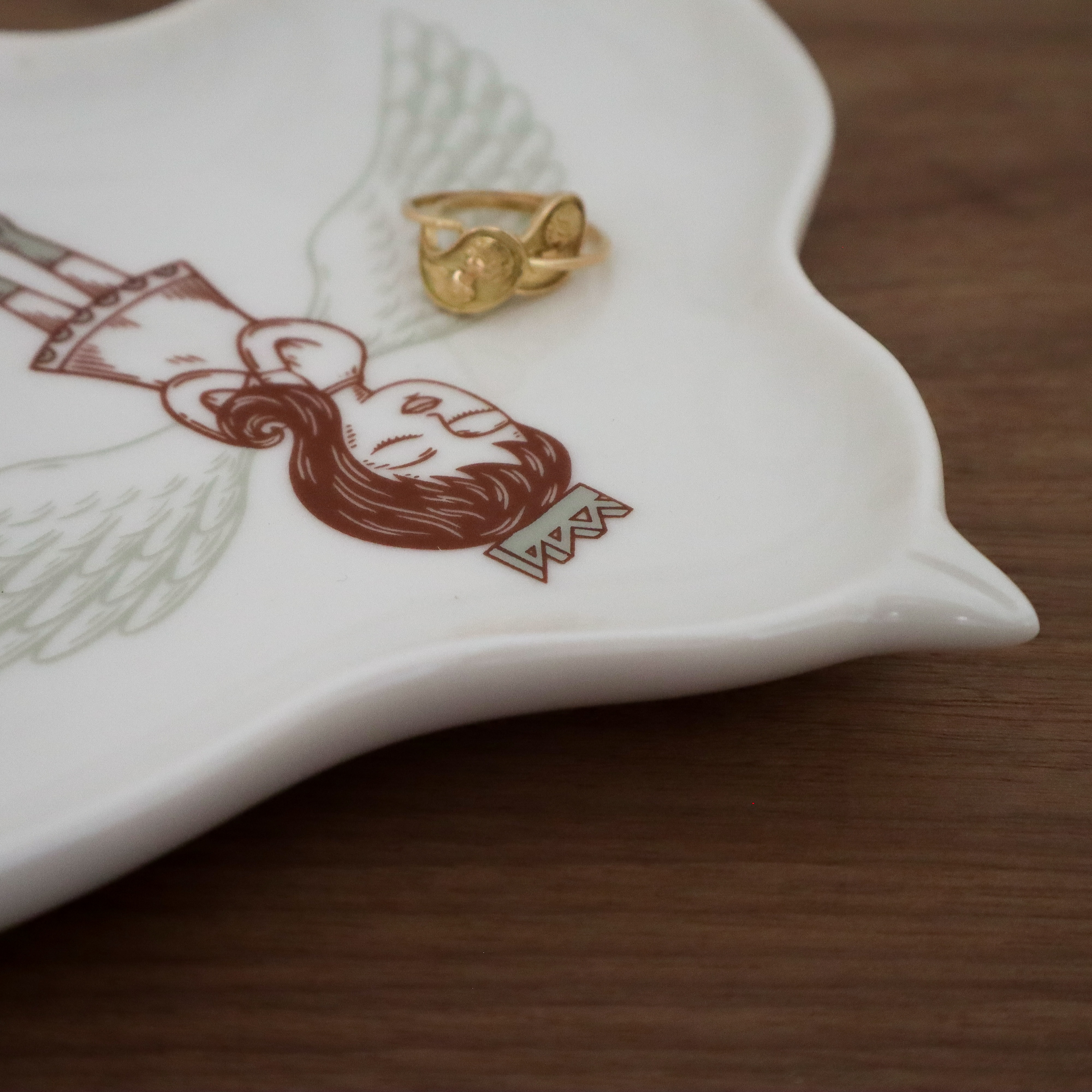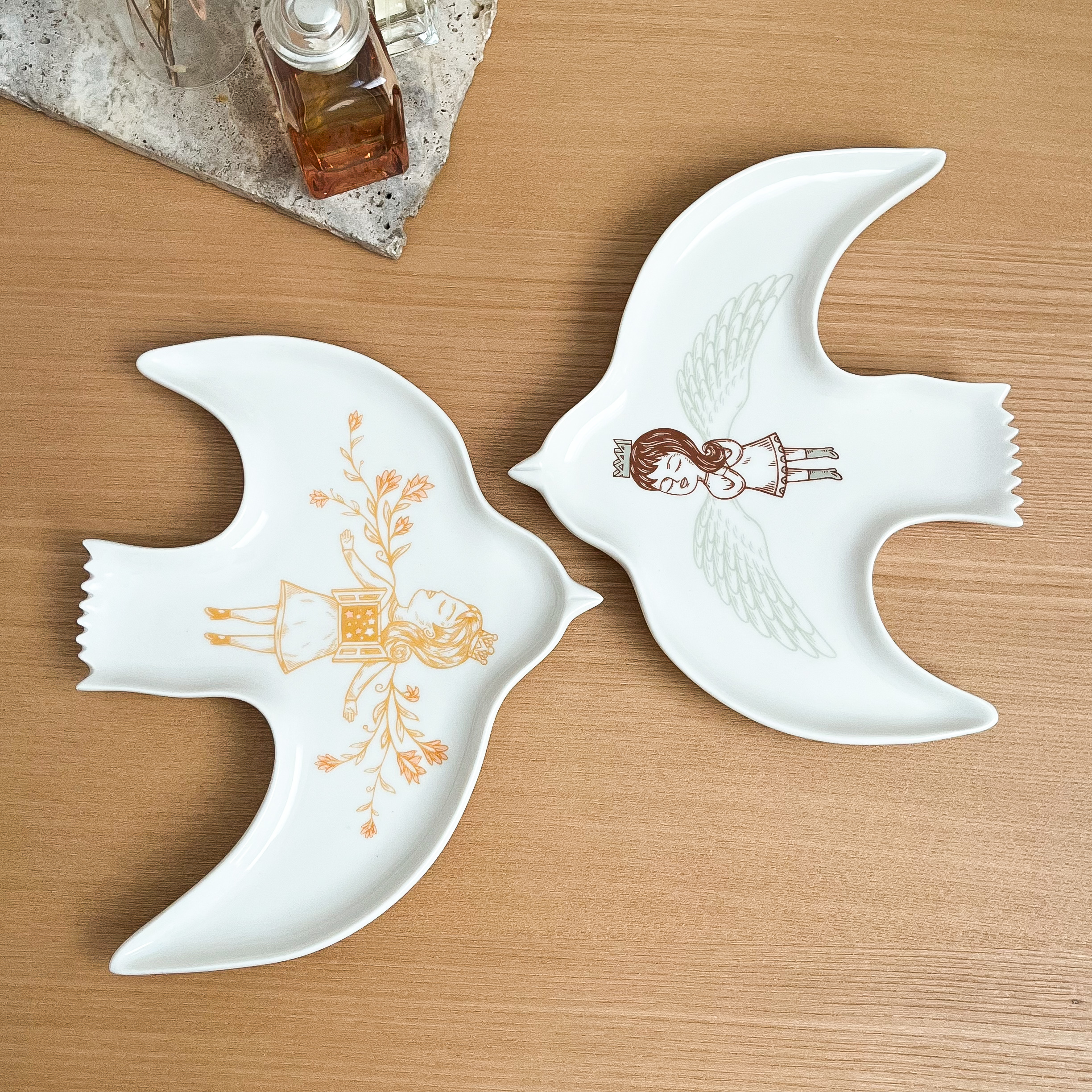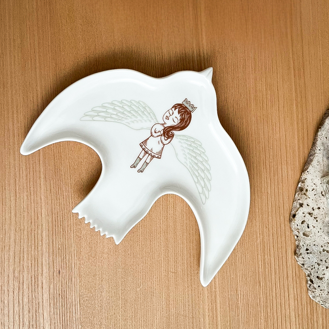 Una nueva Pieza se une a nuestra colección ~ Aves 🜁 Descubre el Plato Joyero Golondrina 𓅪 Delicada Pieza de Porcelana y Calcos en tonos Ocre, inspirado en la icónica ilustración “Alas” de Fito Espinosa ⁎⁺˳ Hecho a mano en porcelana brillante y horneado a altas temperaturas.