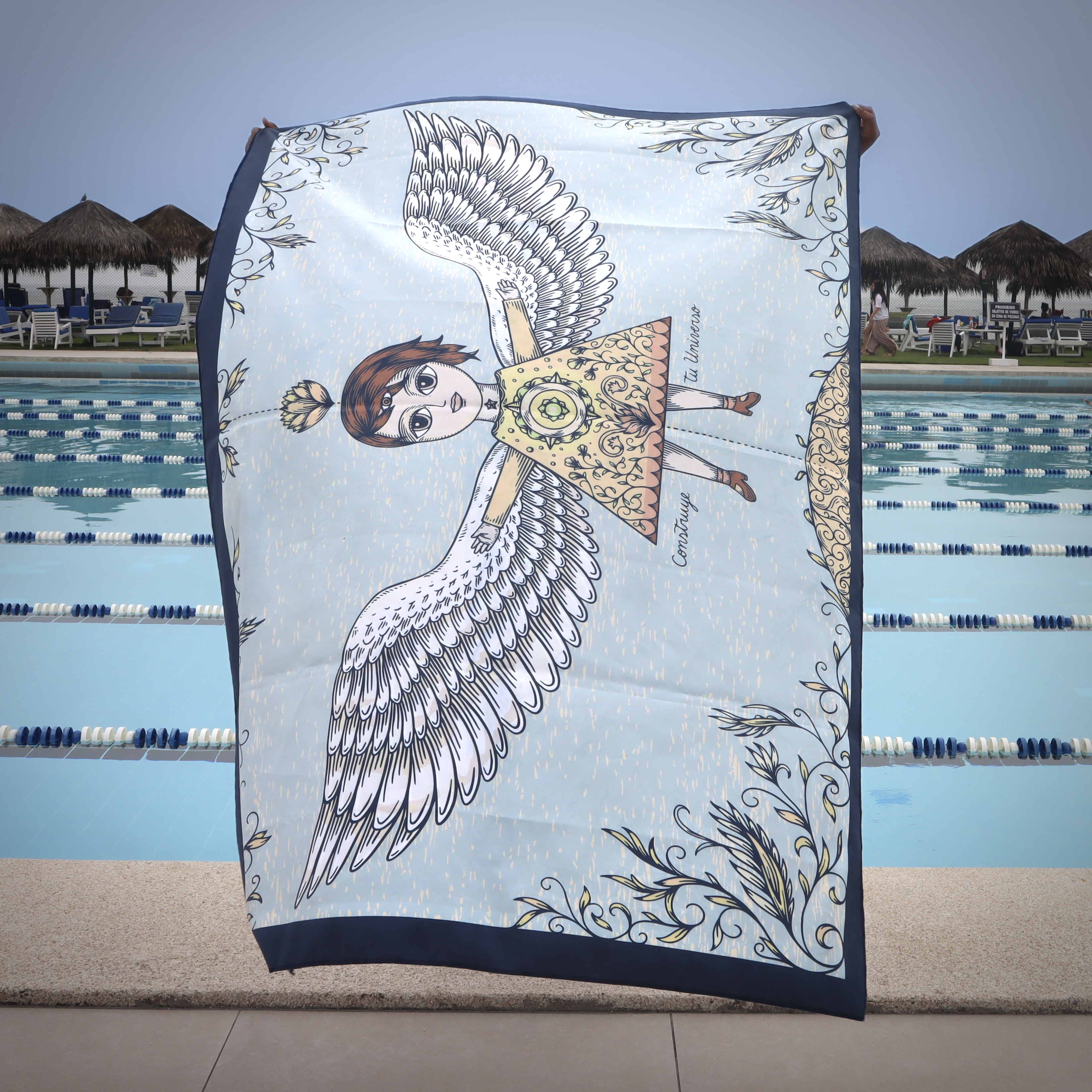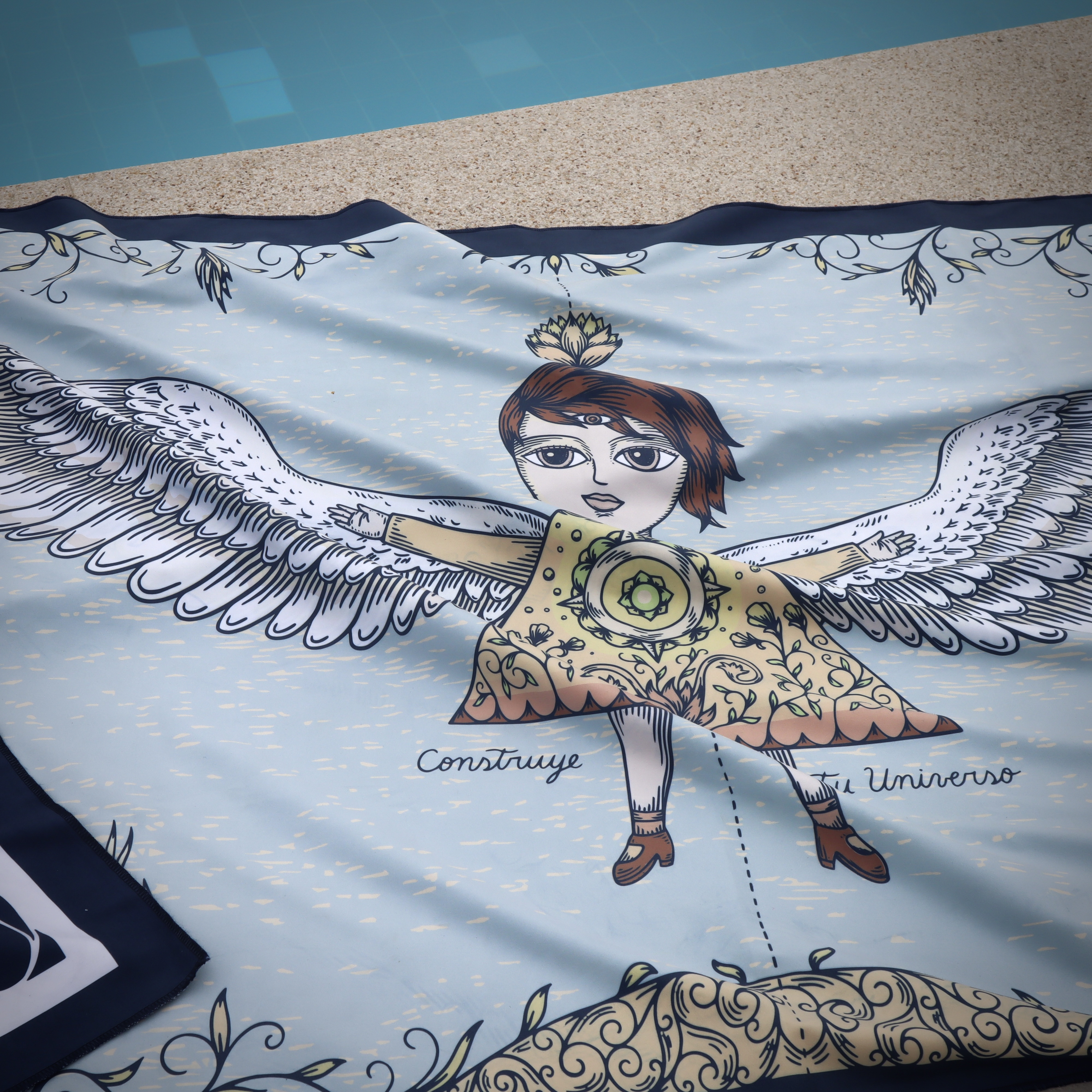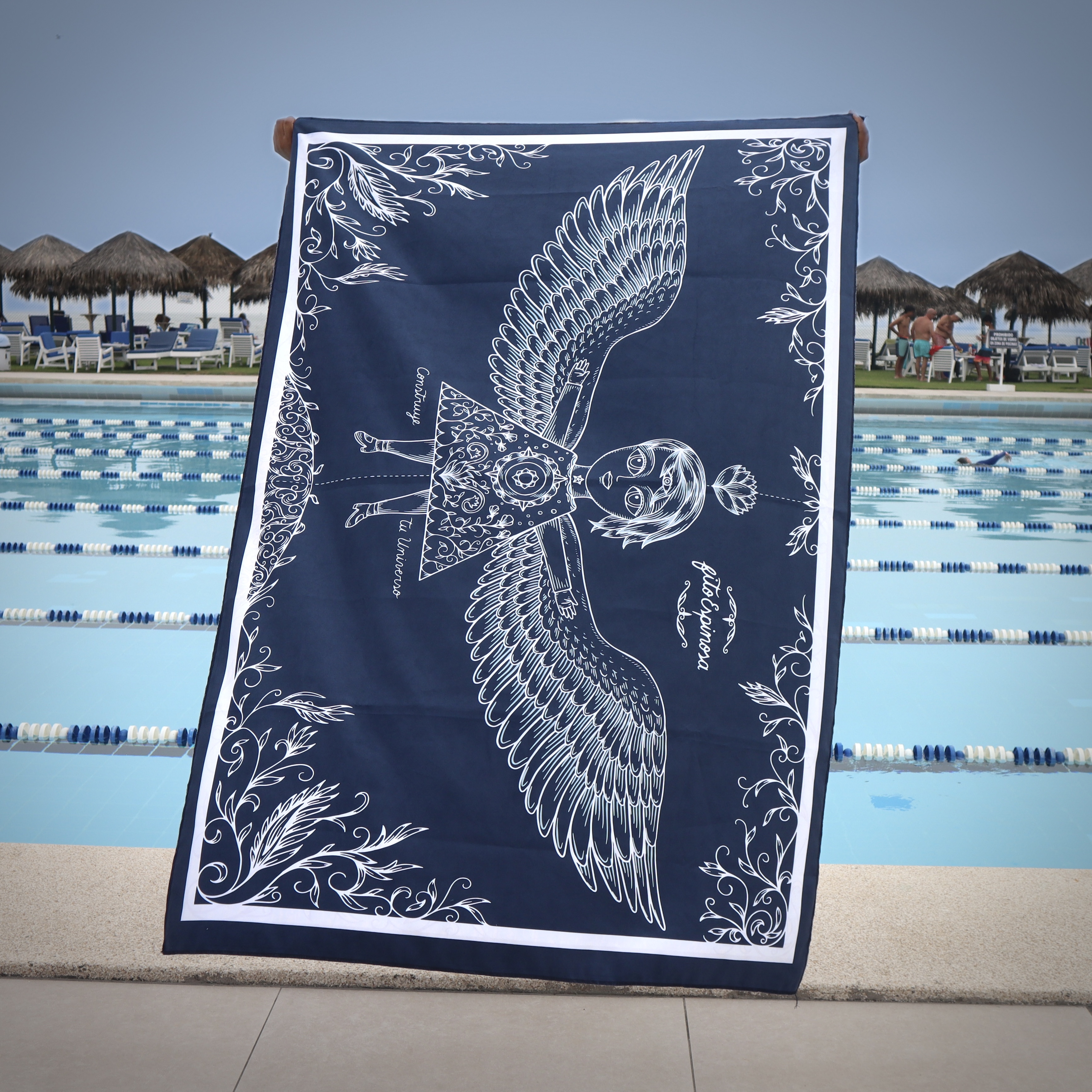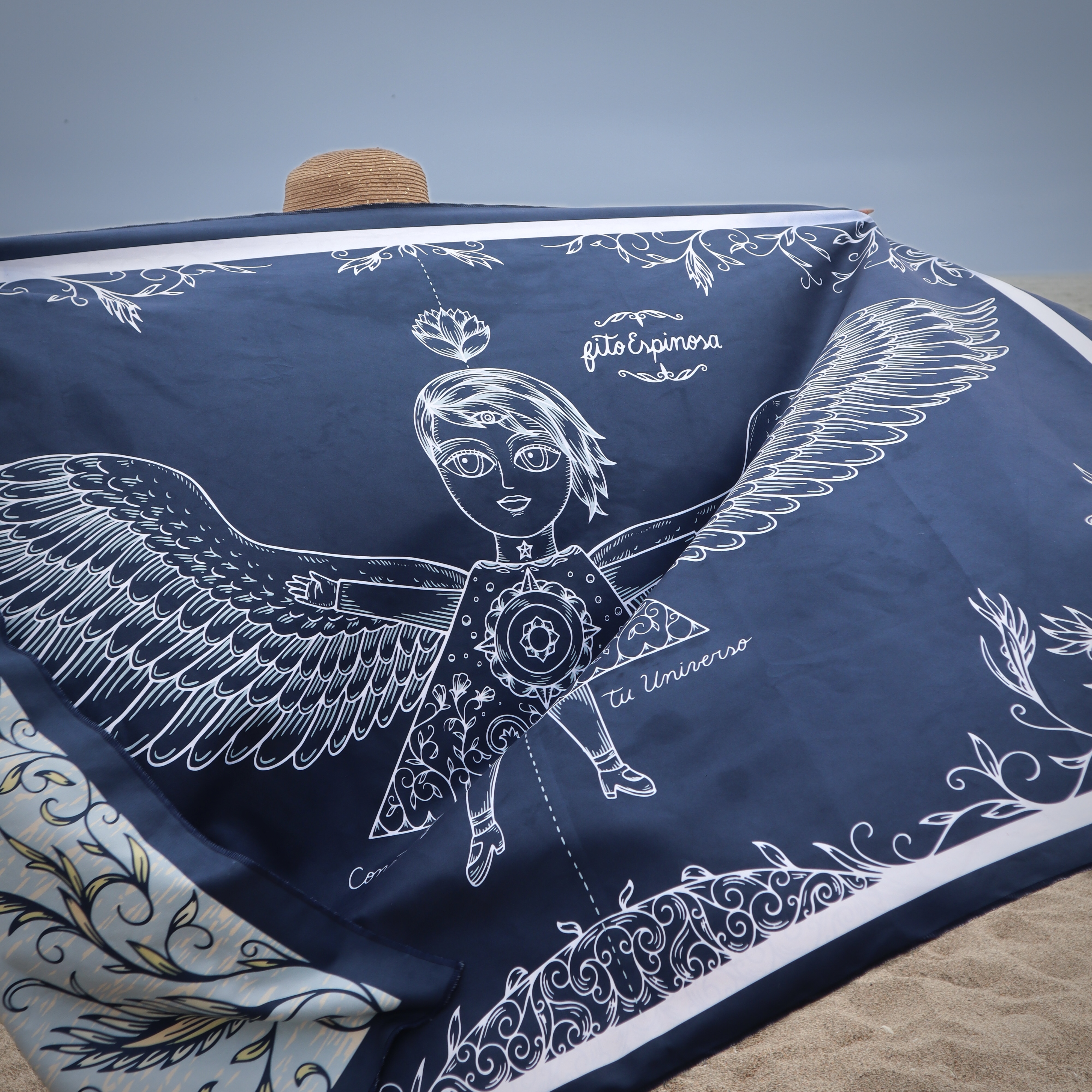 Toalla Reversible de Edición Limitada en formato grande, inspirada en la ilustración “AlasII” de Fito Espinosa. Producto textil elaborado en microfibra ultrafina.