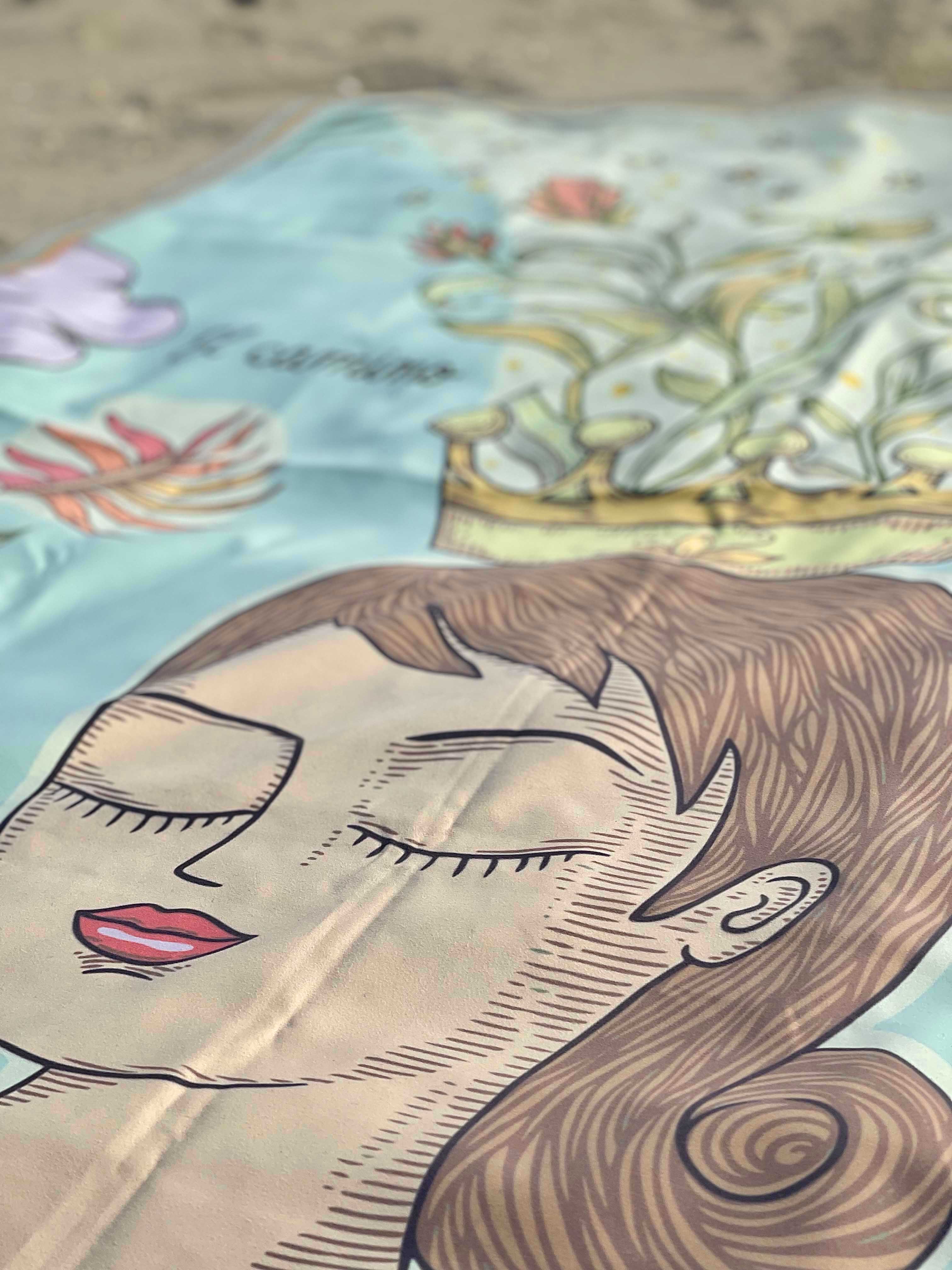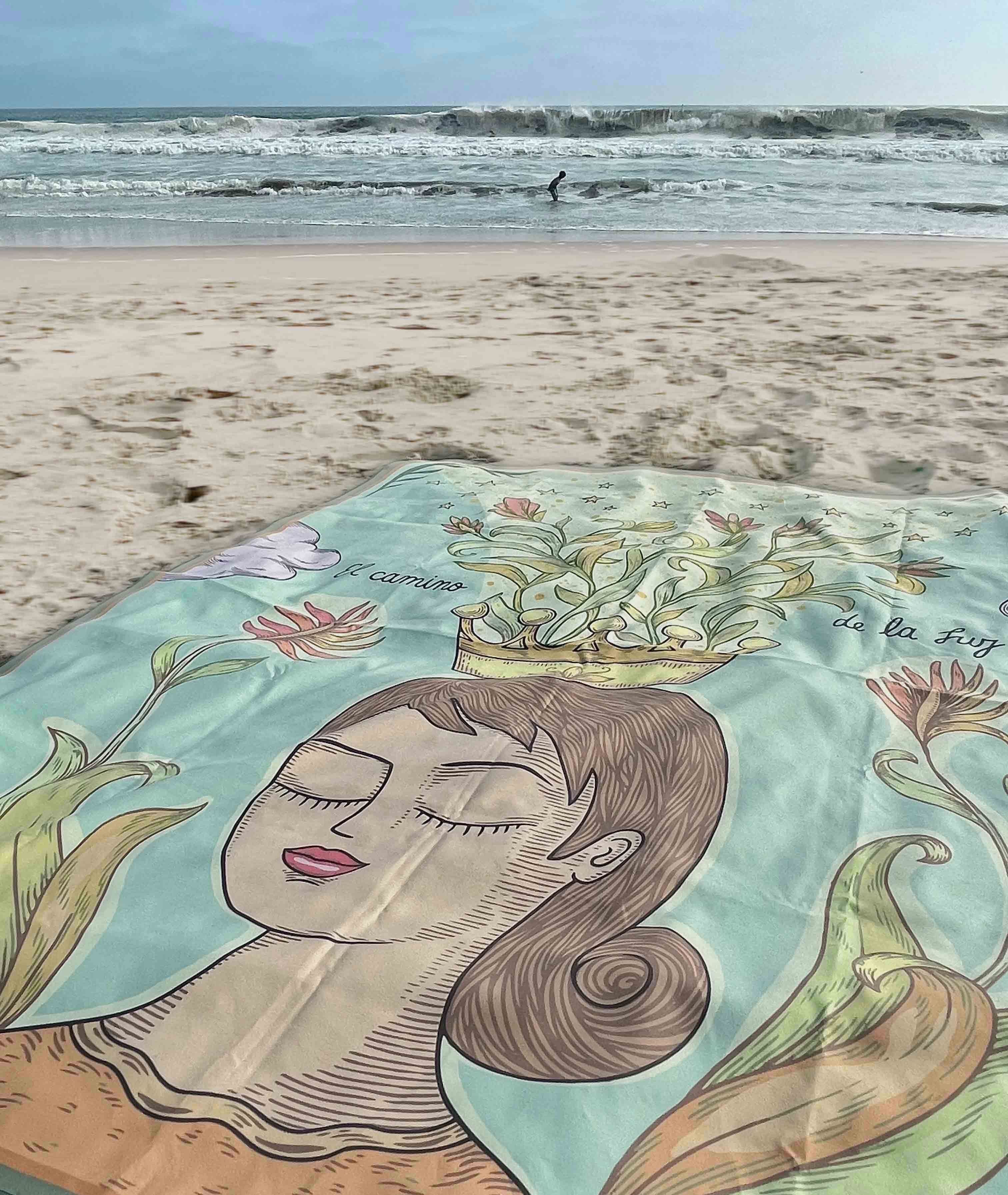 Toalla Reversible de Edición Limitada en formato grande, inspirada en la ilustración “Camino de Luz” de Fito Espinosa. Producto textil elaborado en microfibra ultrafina.