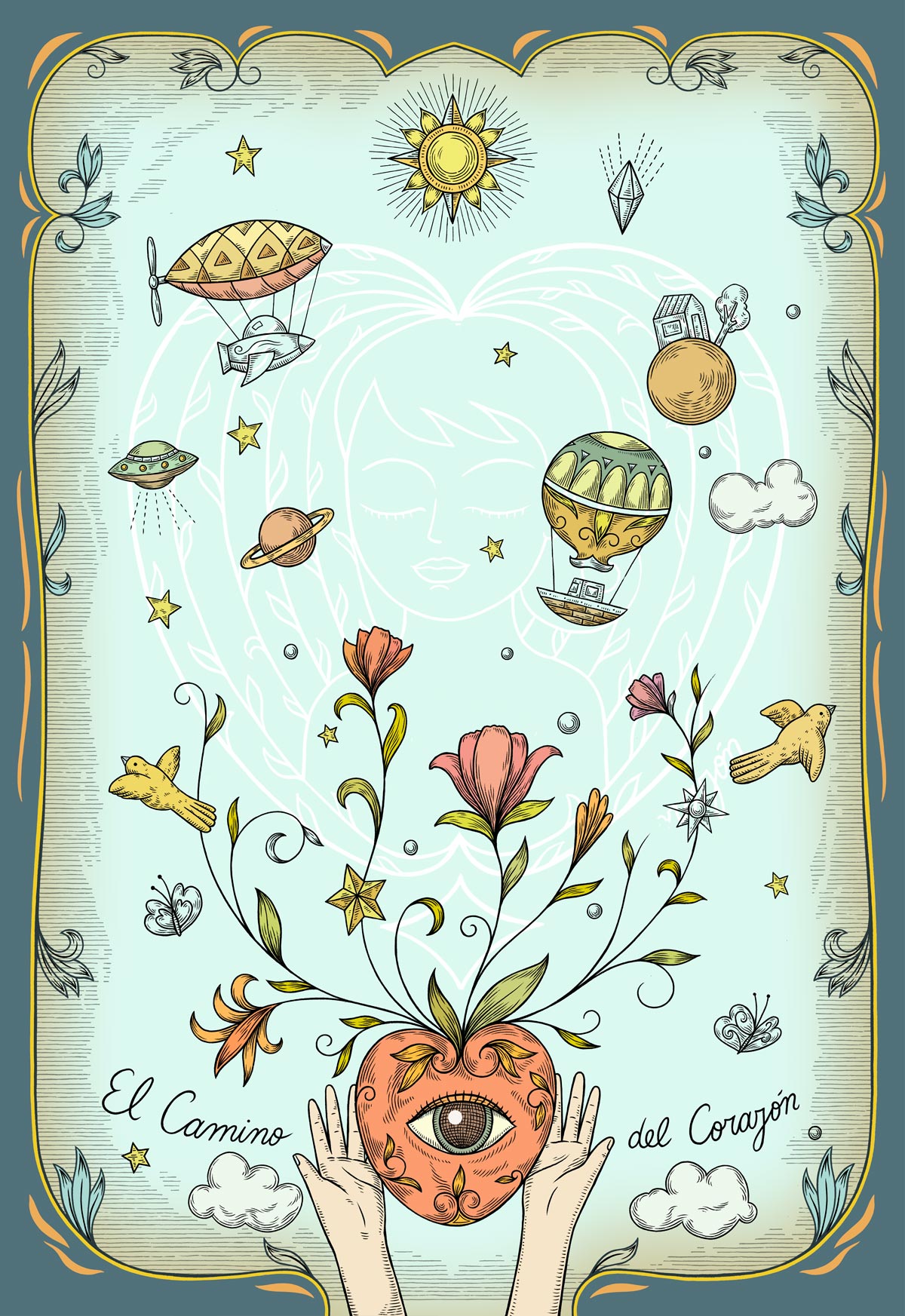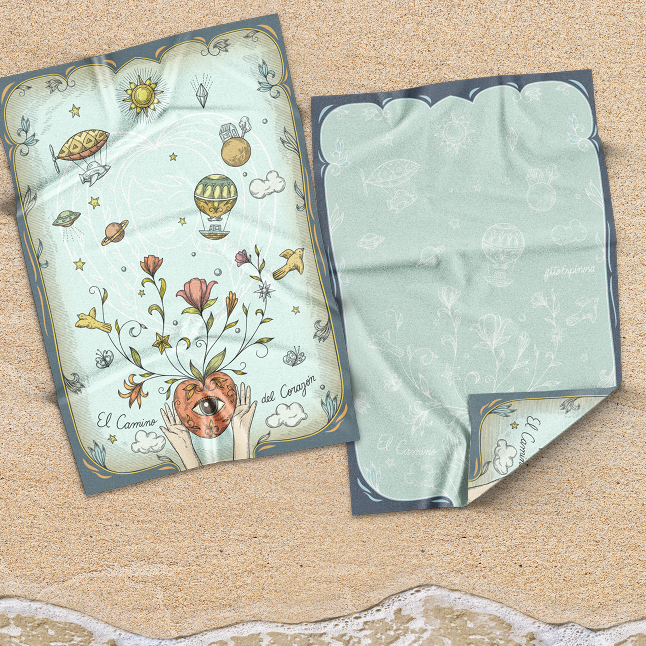 Toalla Reversible de Edición Limitada en formato grande, inspirada en la ilustración “Camino del Corazón” de Fito Espinosa. Producto textil elaborado en microfibra ultrafina.