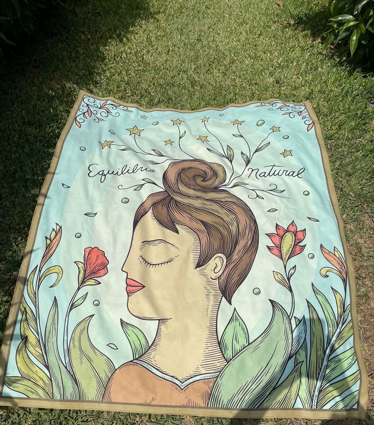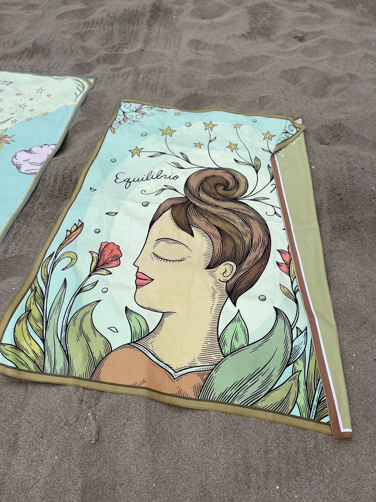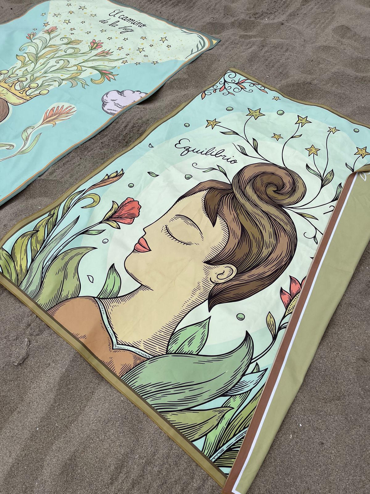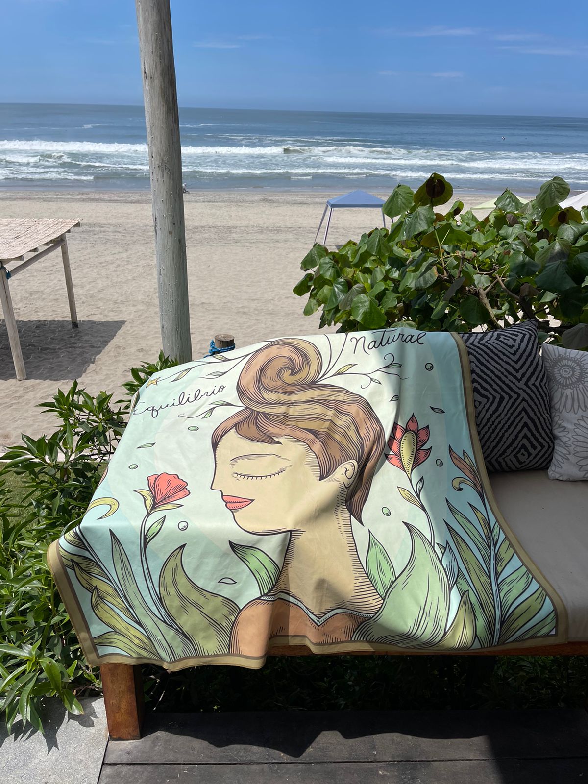 Toalla Reversible de Edición Limitada en formato grande, inspirada en la ilustración “Equilibrio Natural” de Fito Espinosa. Producto textil elaborado en microfibra ultrafina.