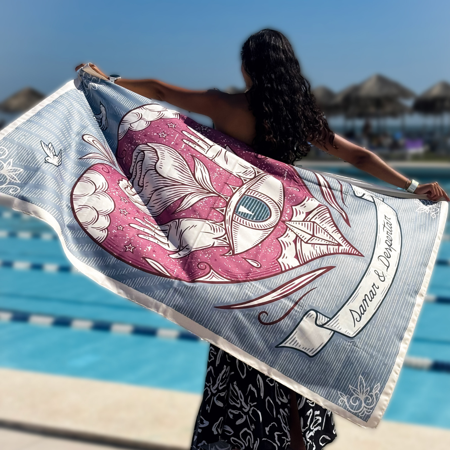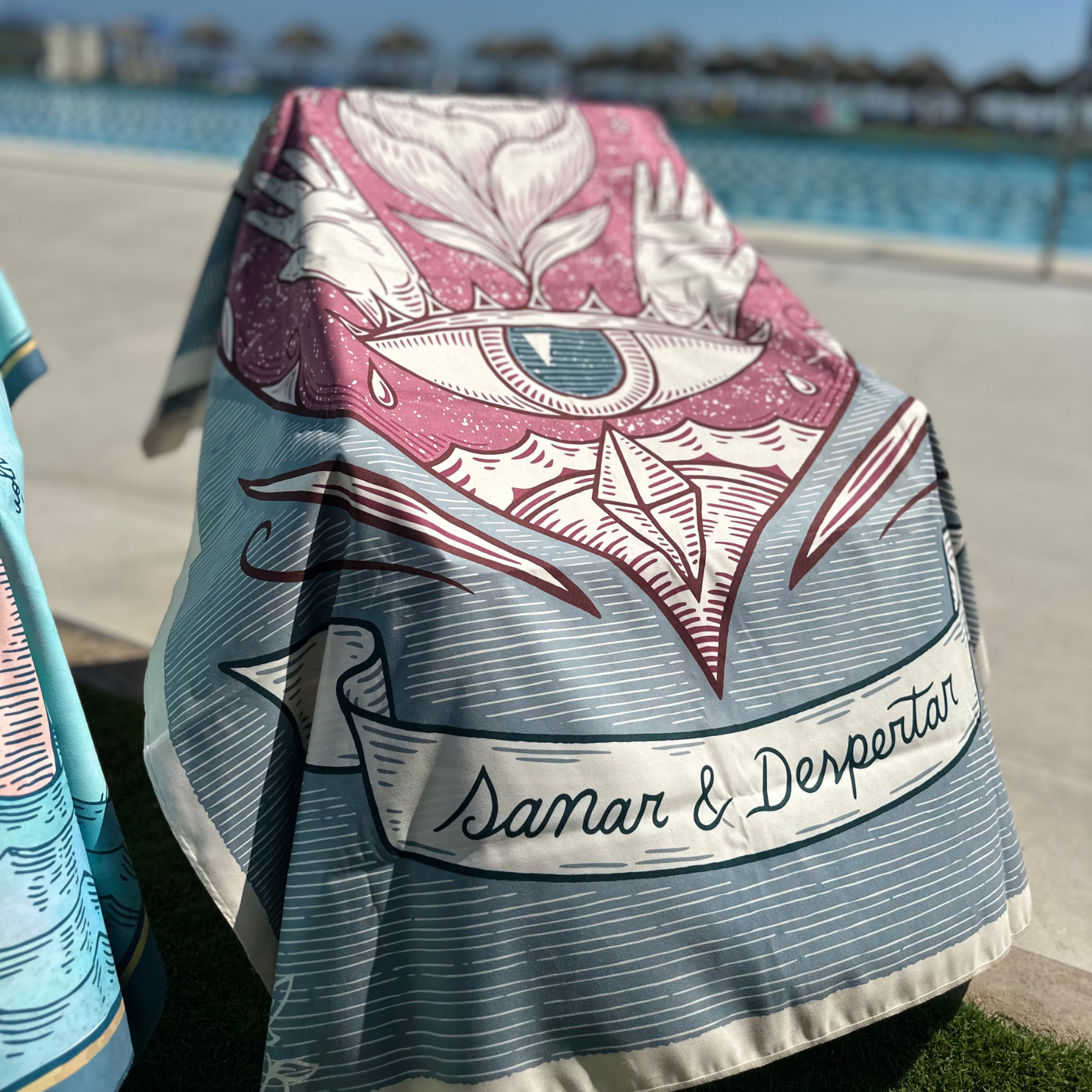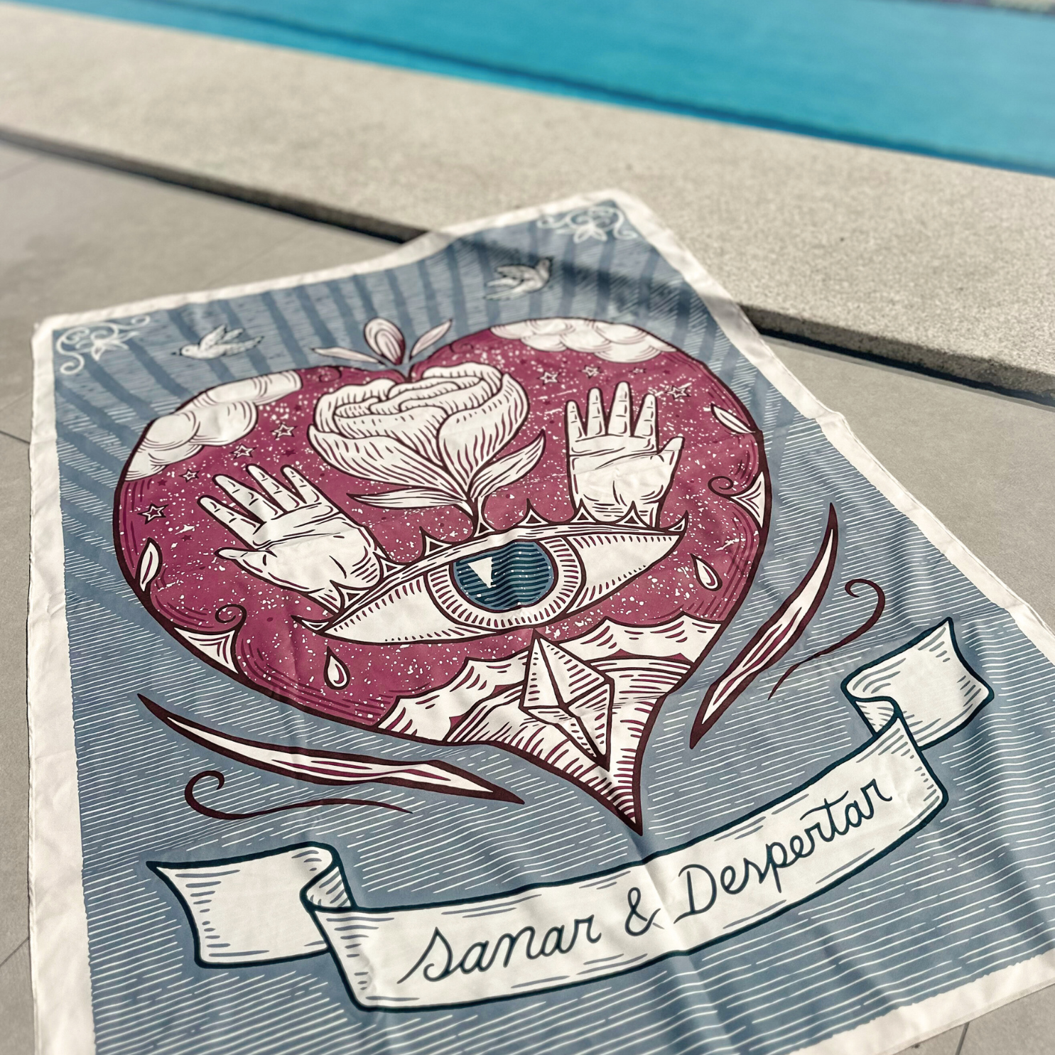 Toalla Reversible de Edición Limitada en formato grande, inspirada en la ilustración “Sanar” de Fito Espinosa. Producto textil elaborado en microfibra ultrafina.