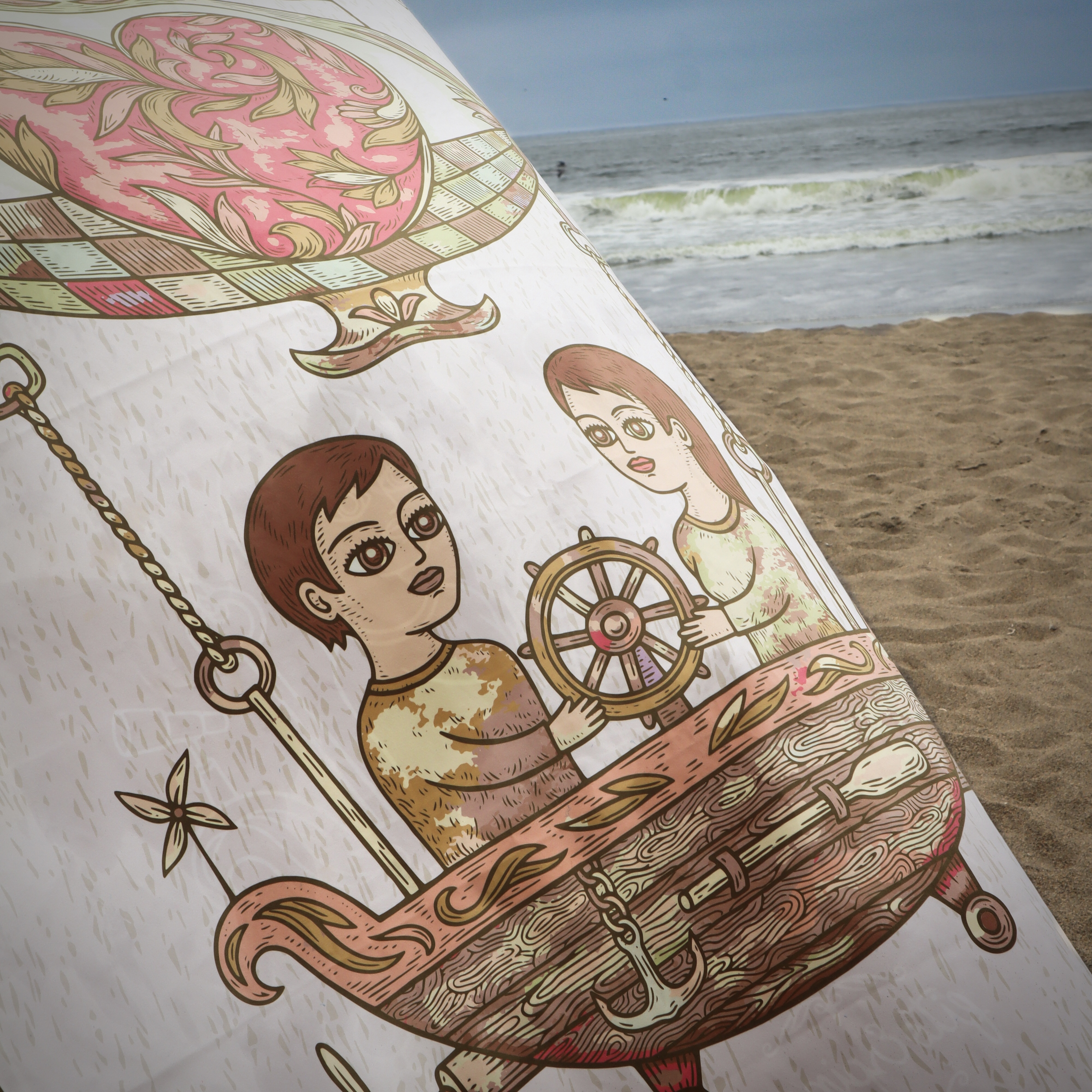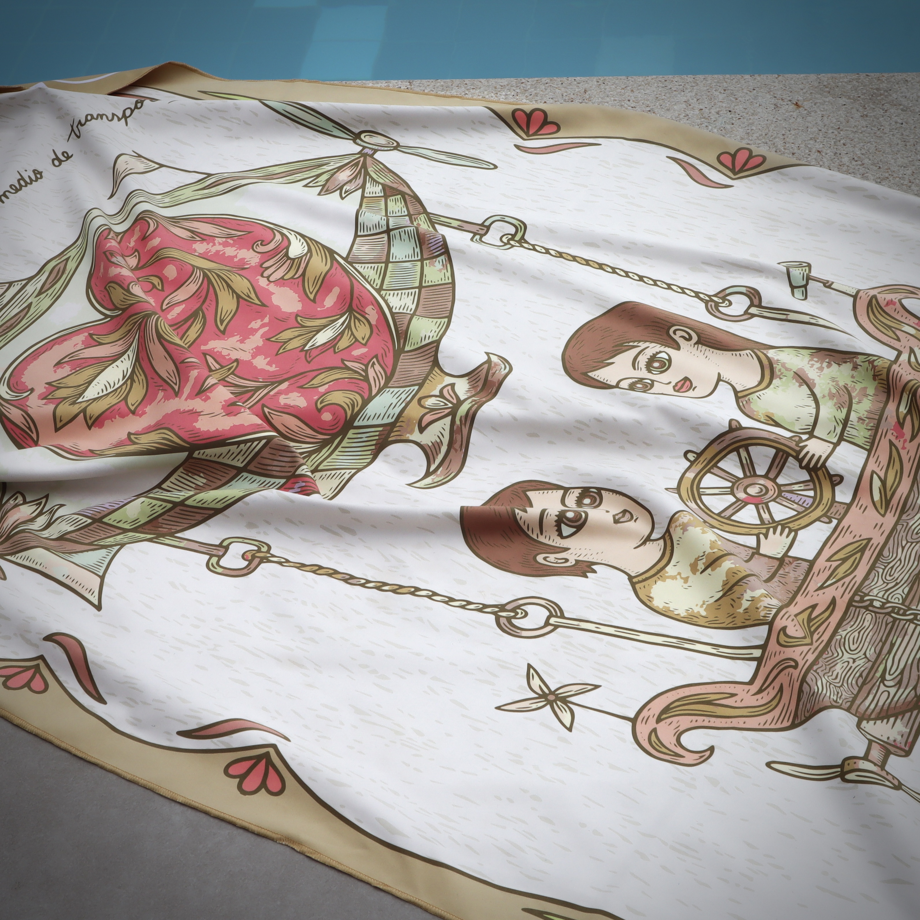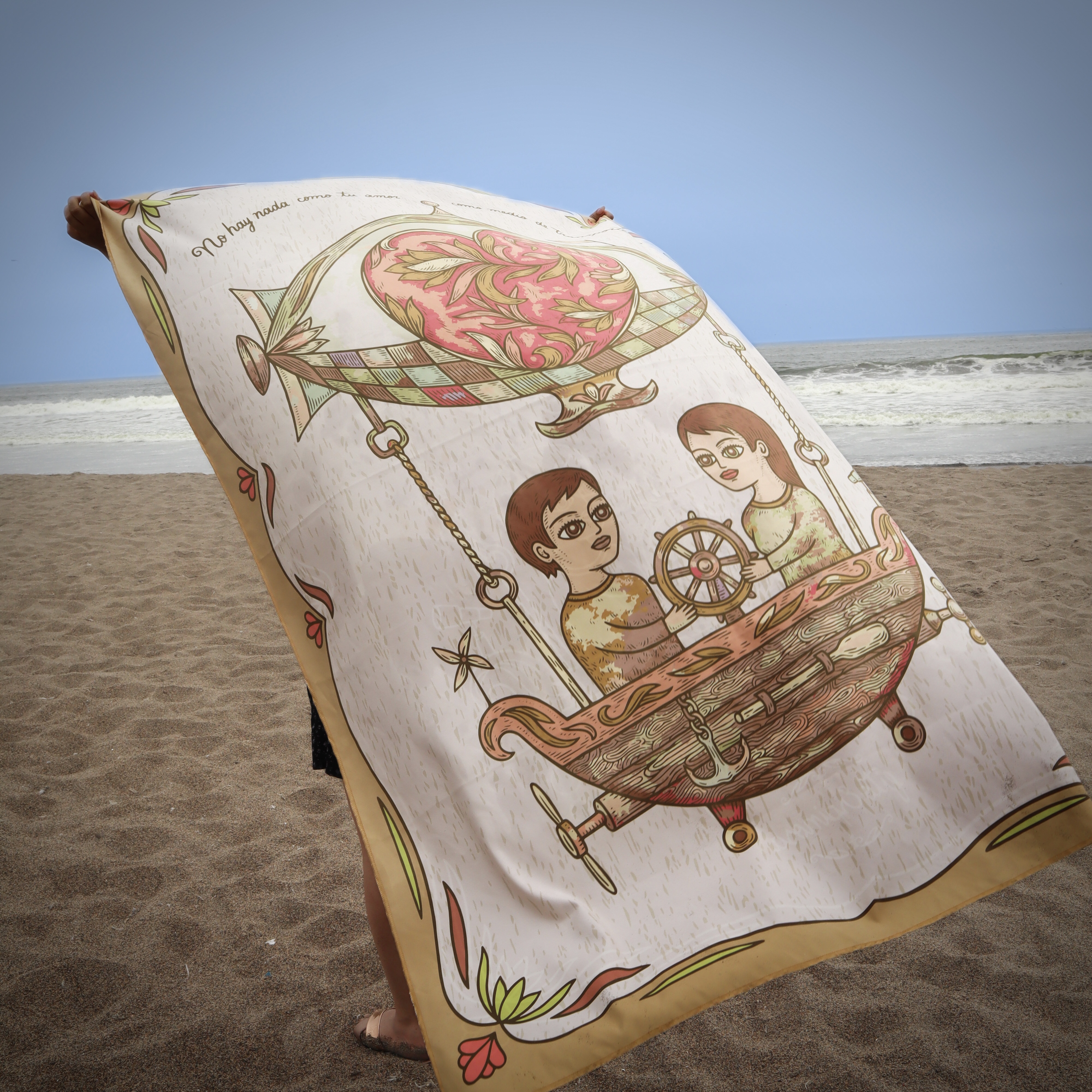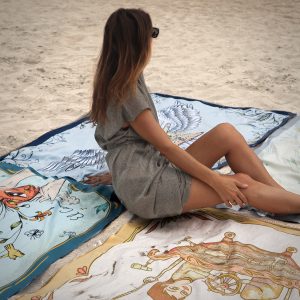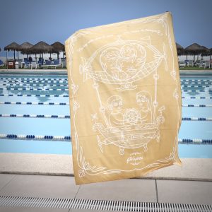 Toalla Reversible de Edición Limitada en formato grande, inspirada en la ilustración “Transporte III” de Fito Espinosa. Producto textil elaborado en microfibra ultrafina.